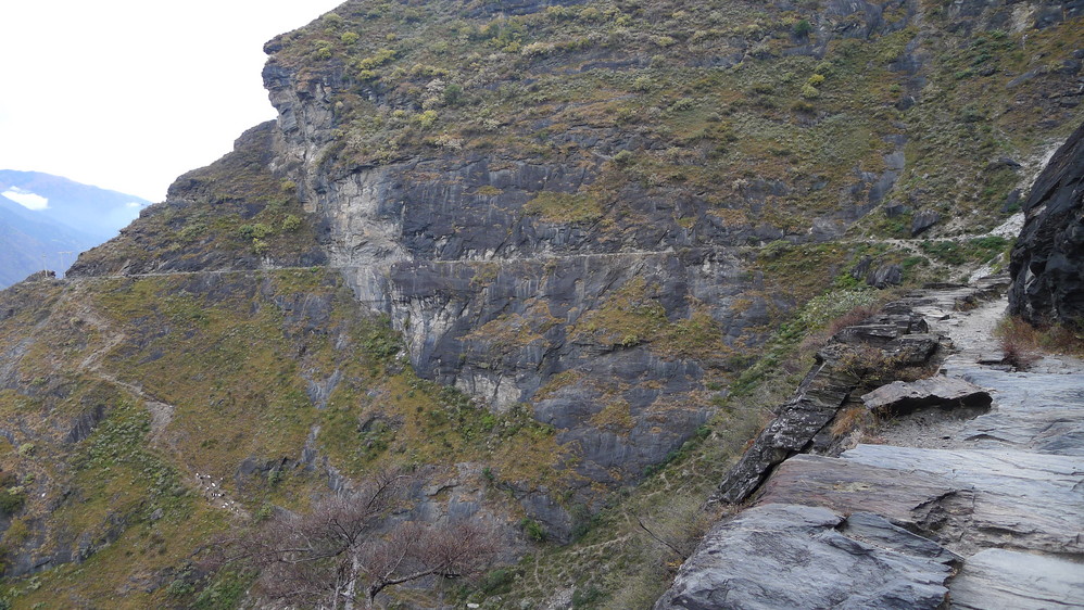 小伙儿在这里牵出了一批小马,自己骑着跟着我们继续赶路。纳西雅阁之前的这一段路还是蛮好走的,坡度不抖。沿着蜿蜒崎岖的山路不断前进。