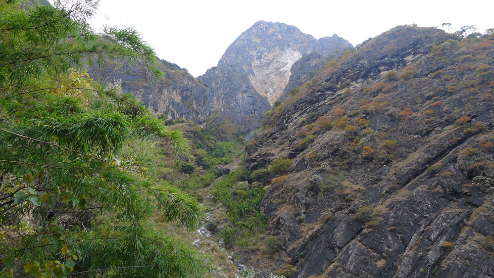 恋恋不舍的离开了虎跳石,开始回程。从谷底往上爬是相当的痛苦的,因为相当于又走了一遍28拐,或者这段路比28拐还要长得多,80多度的陡坡,这时候太阳也露出了笑脸,阳光特别强烈,而且也饿了。