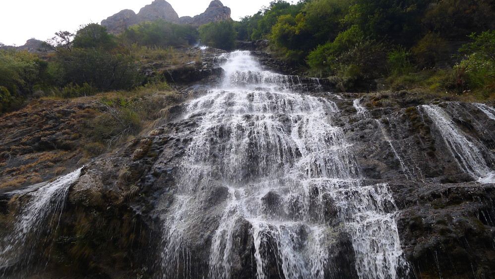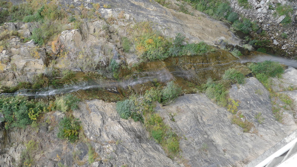 神川大桥旁边的一条小瀑布,非常优美,因为水流小,从岩壁上飘下的时候有一种很飘逸的感觉,像是轻纱曼舞一般,只是这里位置不好,不大引人注意,也没有好的景色衬托一下。