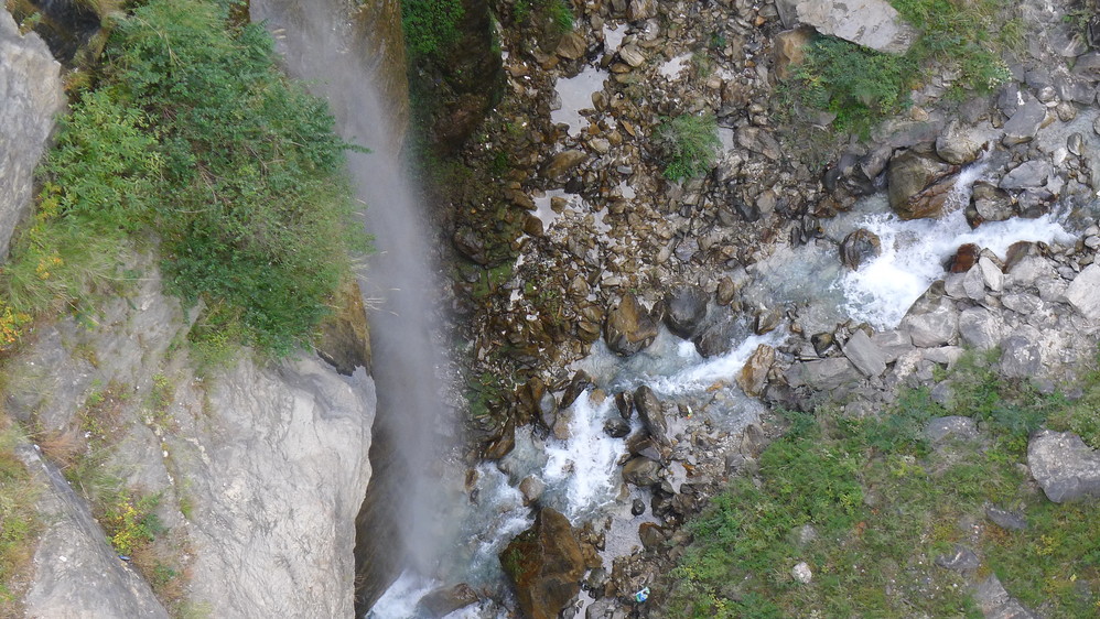 瀑布的水非常的凉,我在瀑布底找了半天也没有找到心仪的石头,后来找了一块雪白的石英石,带在身上,从虎跳峡 ,到后面的雨崩 神湖,泸沽湖 ,我都找了一些石头带在身边留作纪念,还蛮重的,不过谁叫我喜欢呢。
