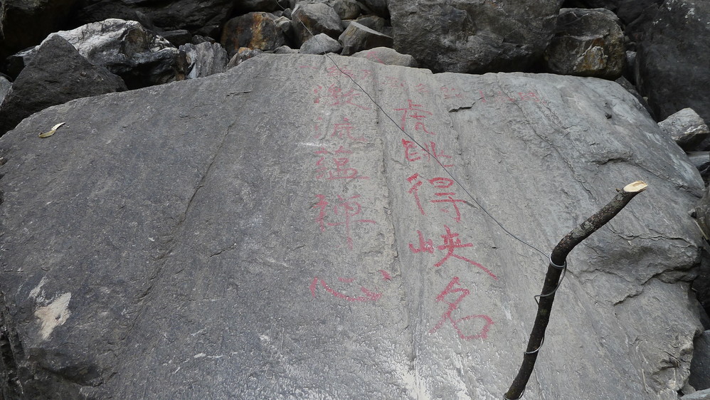 中间的一块巨石就应该是“上虎跳石”了,我们走的线路无法近距离观看,只有去中虎跳看虎跳石了。