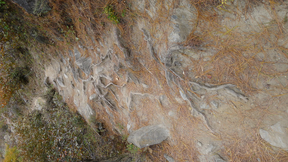 树根裸露在地上,盘根错节。