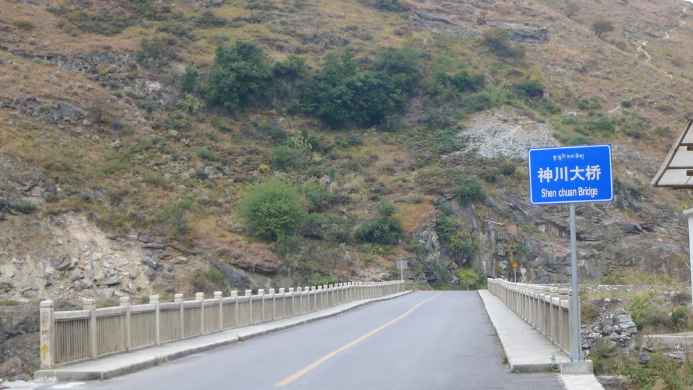 中峡青旅旁边的神川大桥,沿着这条路走就去往中虎跳和下虎跳。打听了一下客栈老板,从这里去中虎跳往返要2-3个小时。