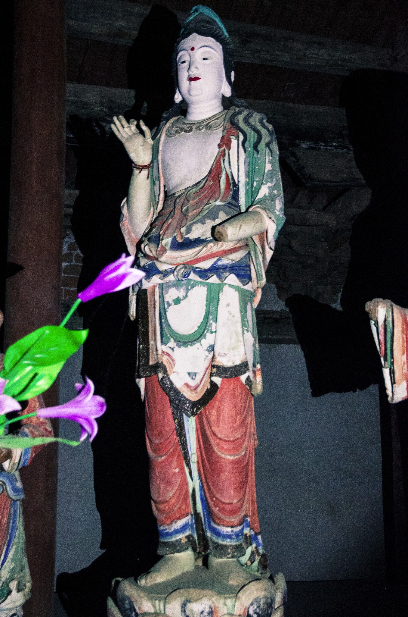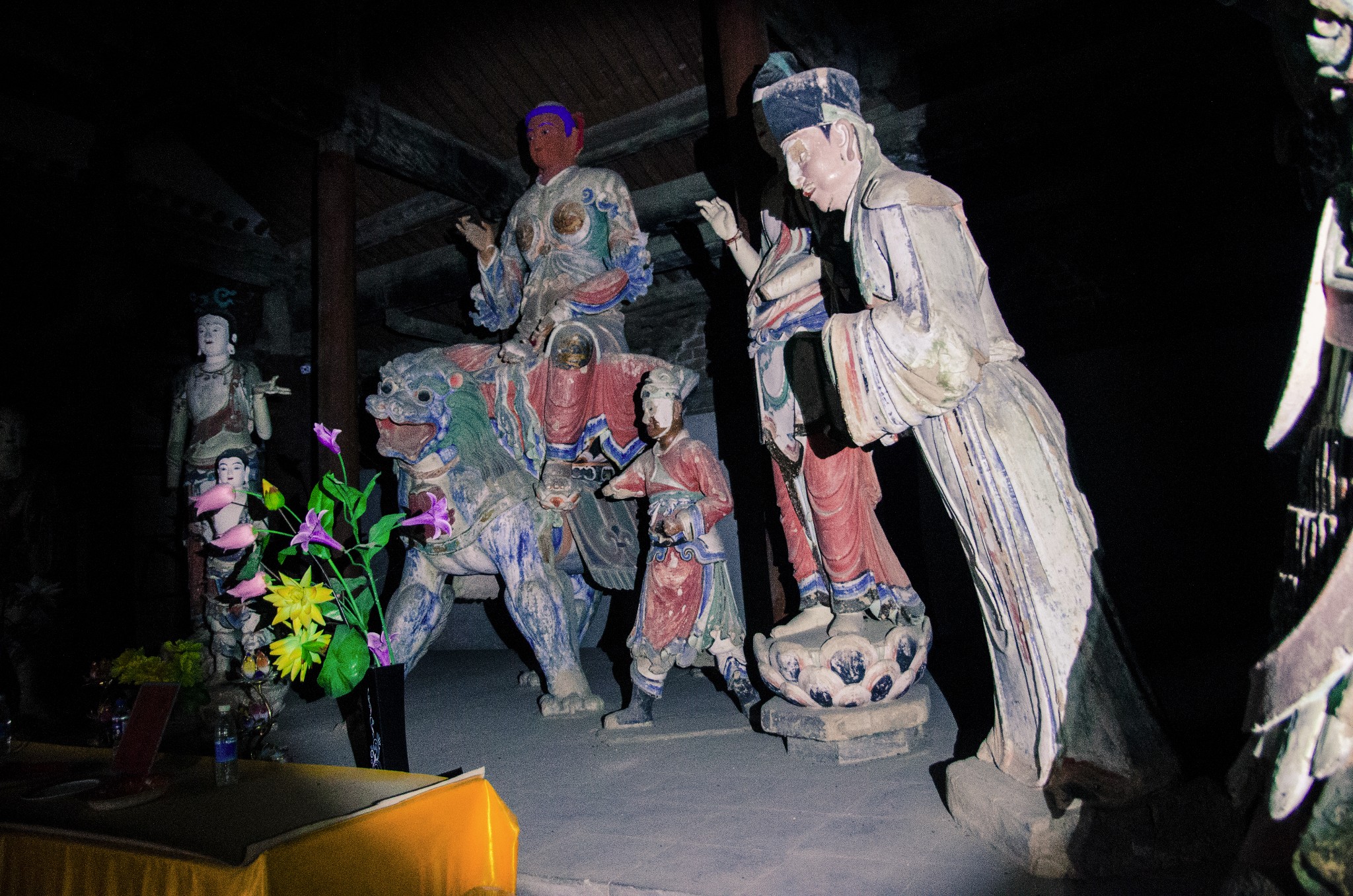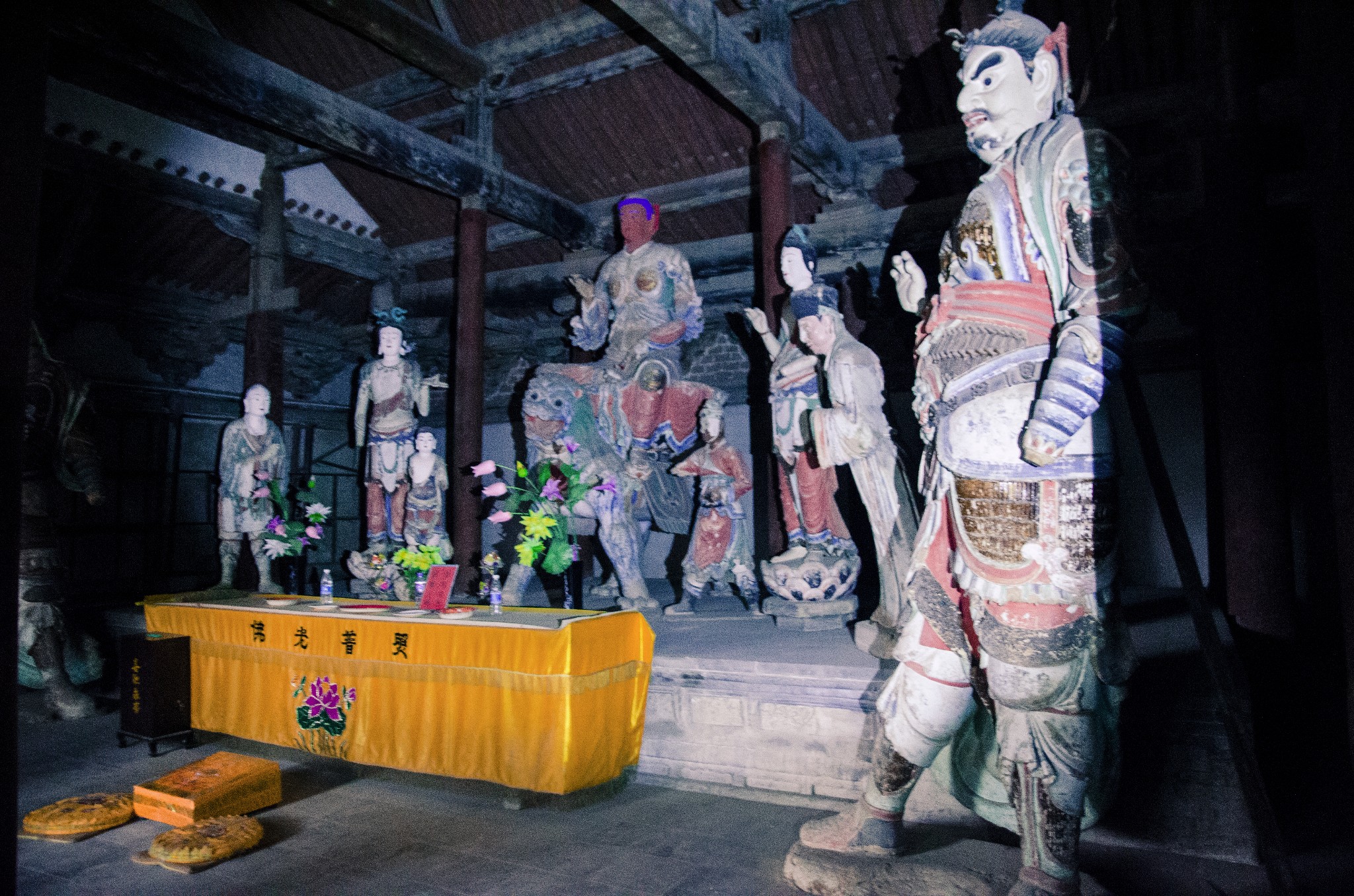 殿内,居中宽大佛坛上立有宋代彩塑9尊。