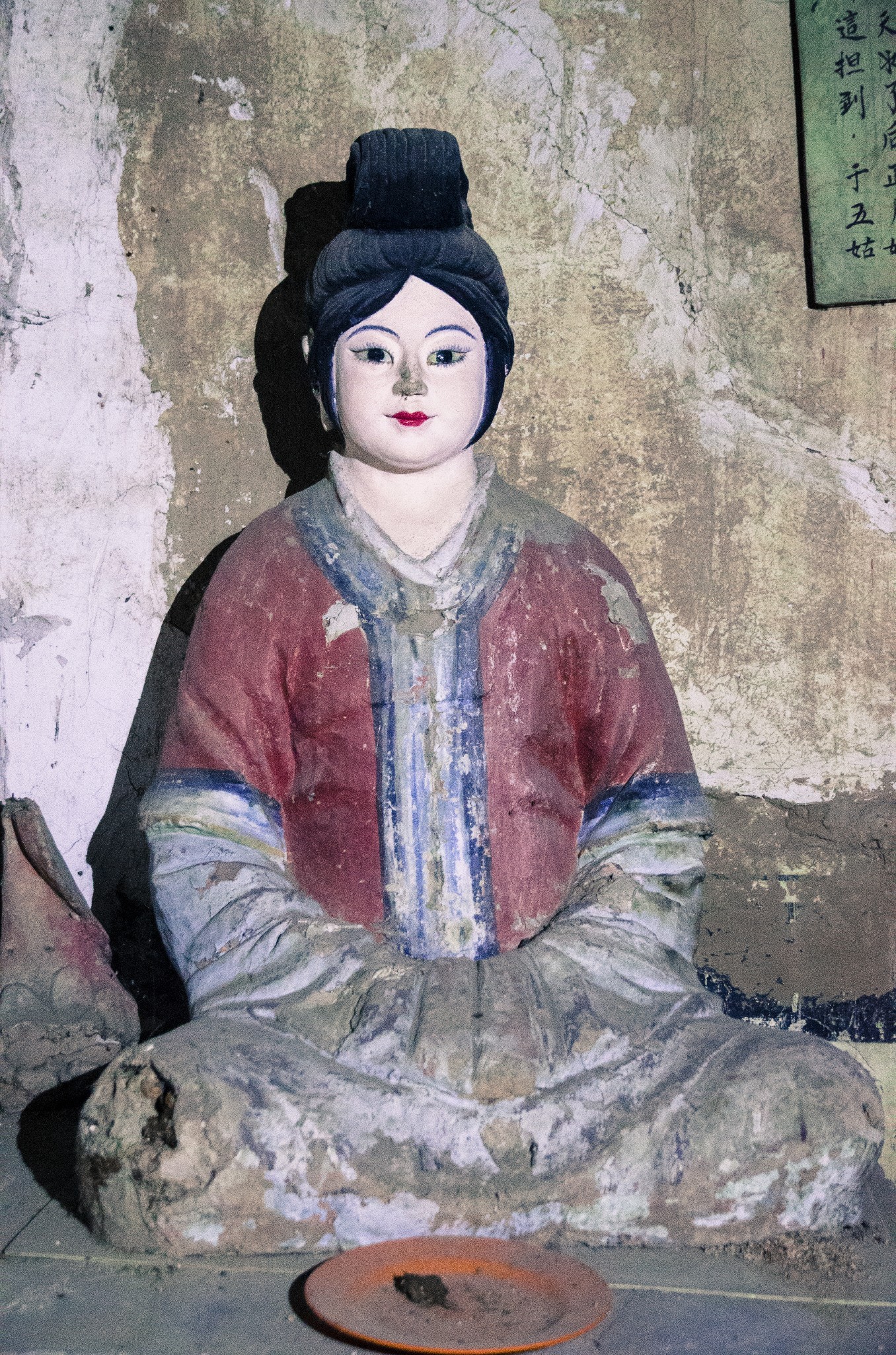 文殊殿壁角,曹姑姑坐化像,外部泥塑,内部肉骨真身。