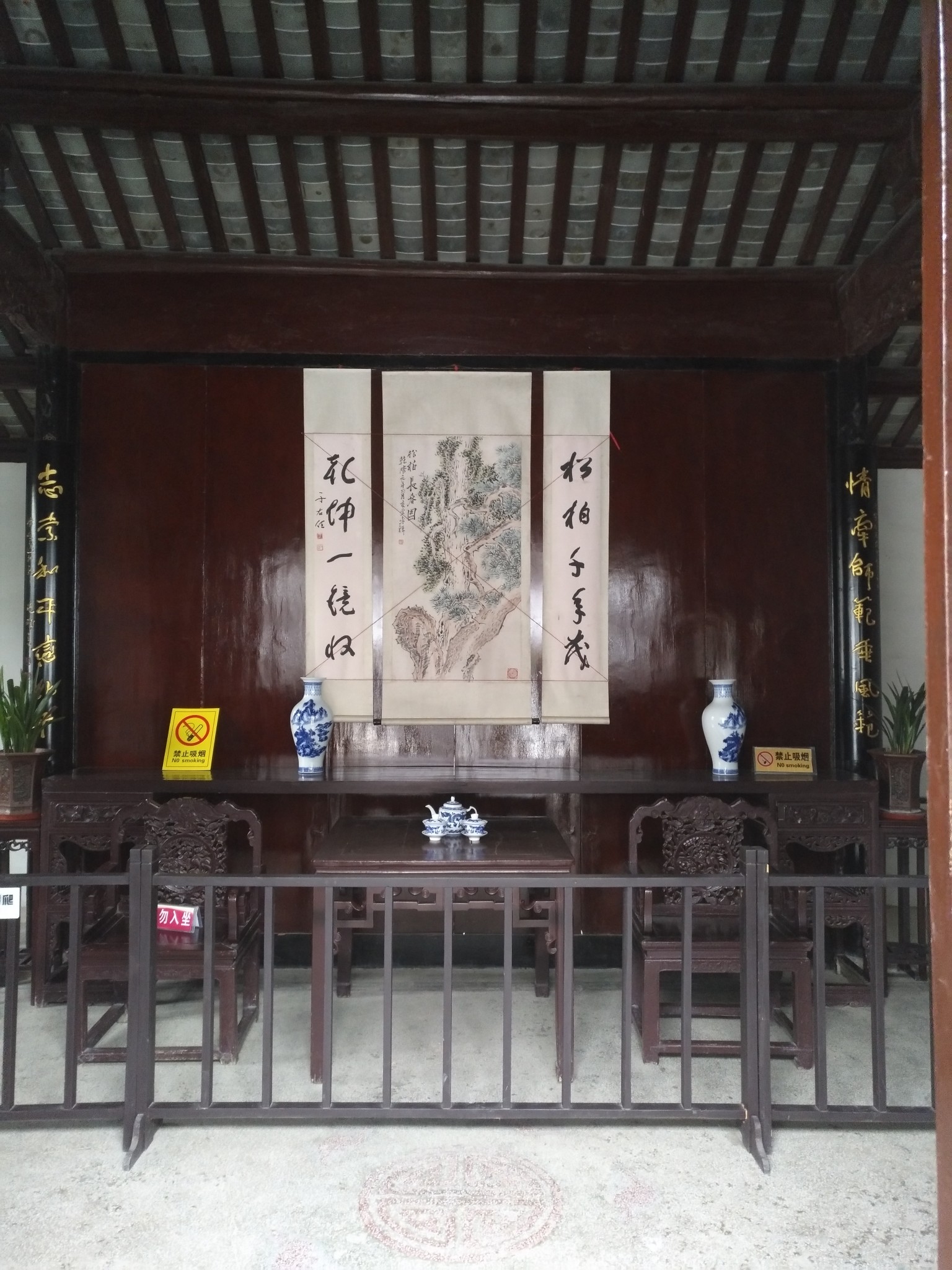 观音殿内的供桌上雕刻着西游记故事木雕,还写着随缘乐助。这里可不像很多旅游热门景区的寺庙那样,充满功利主义和铜臭味。寺里的和尚很有传统出家人的修养。