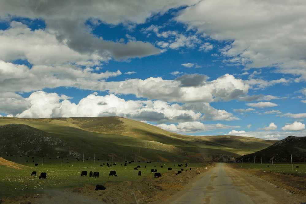 6月份,天气晴好。伴着偶尔的高反头疼,在蓝天白云中飞驰,是种别样的体会。