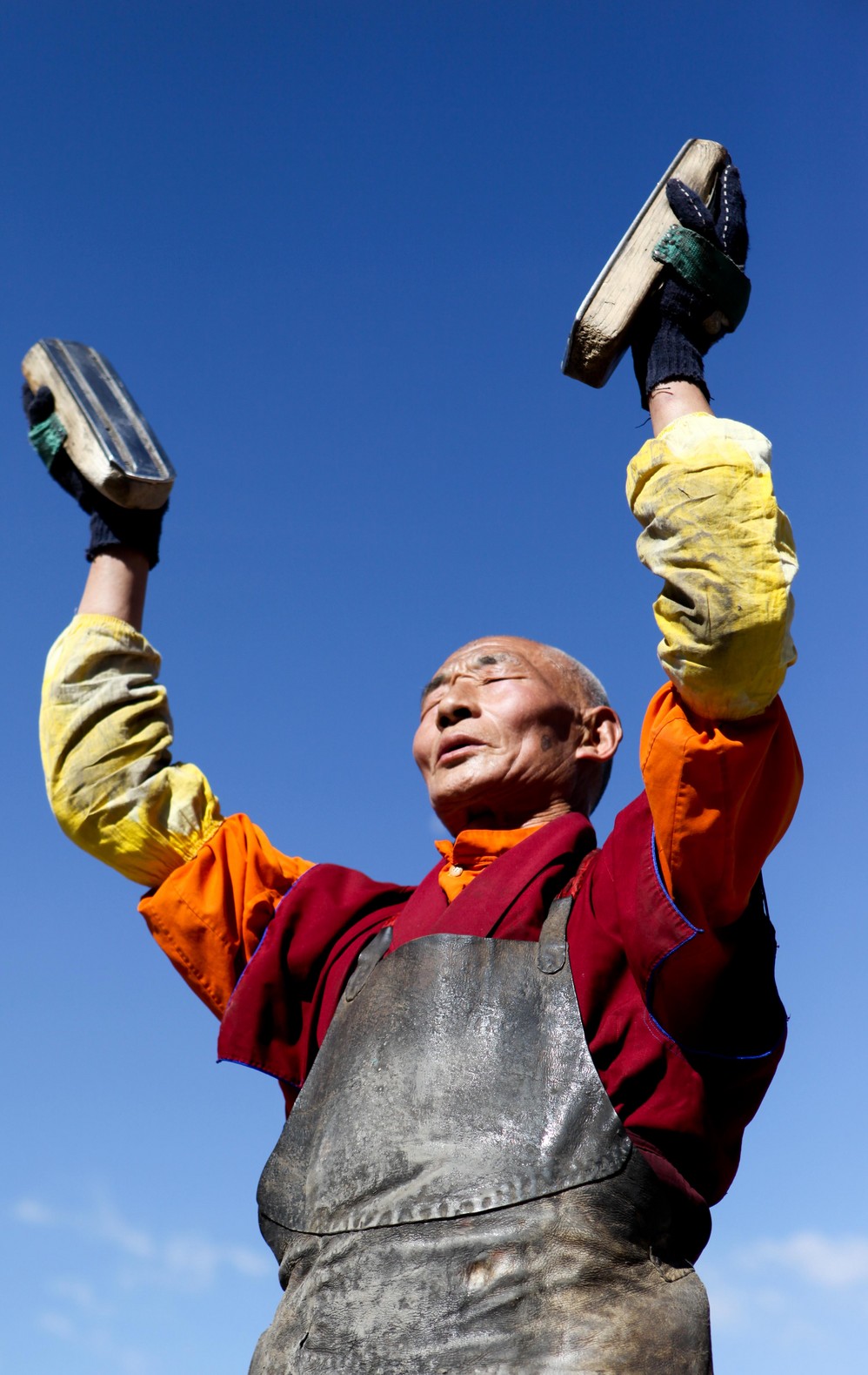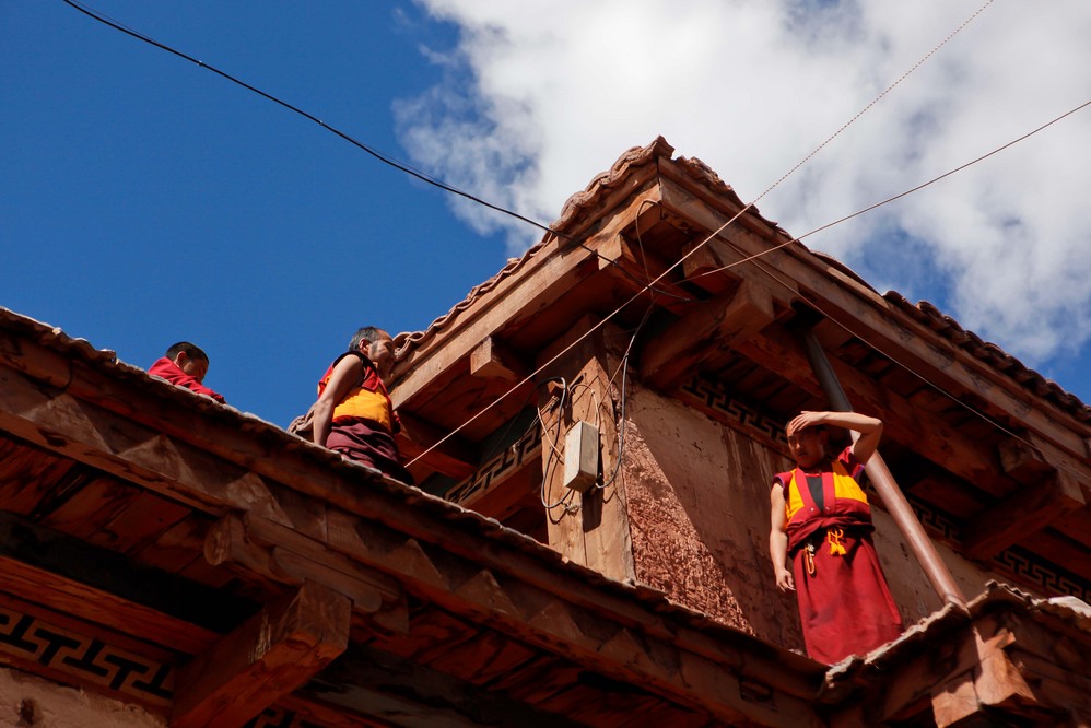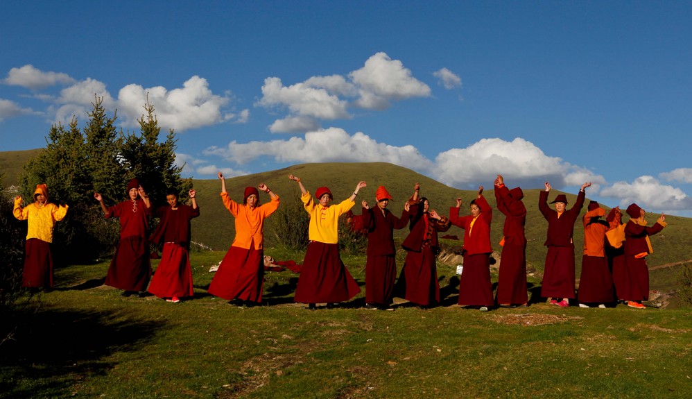 为了不被清场哄出寺院,我躲在了色拉寺的厕所里。清净的寺院,寻找锅庄的声音,那是种身体和内心一起发出的乐声,他们那么轻松和开心,在蓝天白云间,用歌声在舞蹈!