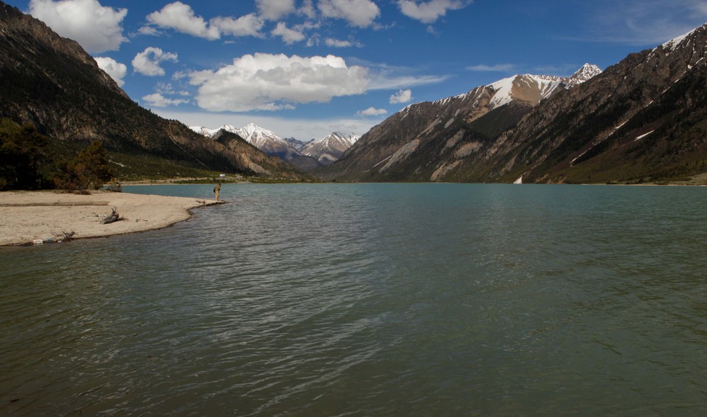 然乌湖边,我对着静静的湖水发呆;