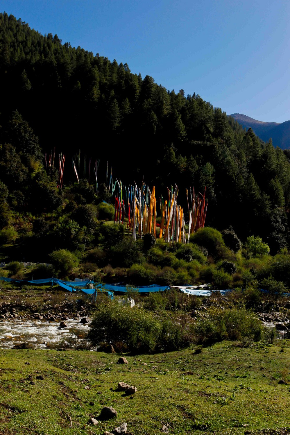 通麦和盘龙是同一个地方的两种不同叫法。夏季伊始,雨水不多,天险显得比听闻的来的和蔼很多。