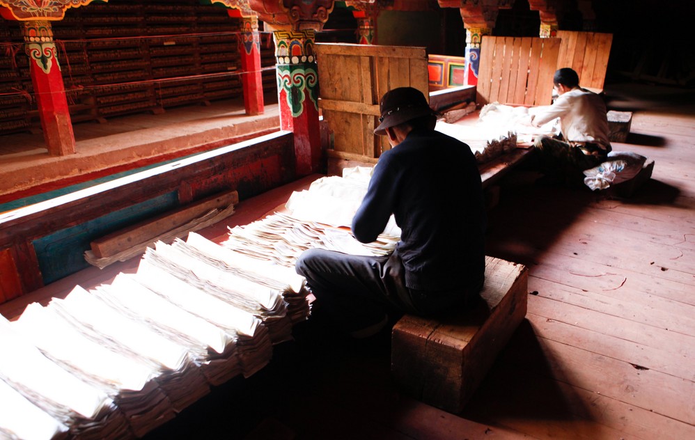在印经院,我看到一个老阿妈,虔诚,震撼。