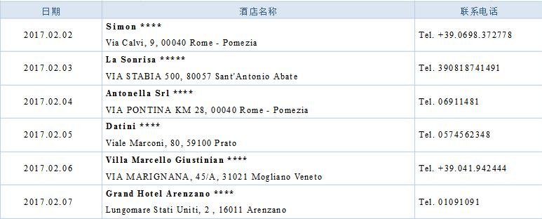 此行住宿的酒店如下: