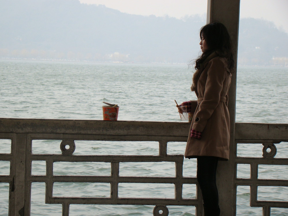 貌似有点虎头蛇尾额,附赠一张抓拍到的神图,西子湖畔孤山脚下的泡面妹,彻底被雷倒了