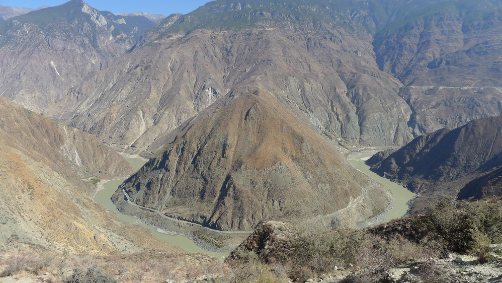 月亮湾,这个弯度够大的了吧?金沙江 在这里流过。这里本来有个观景台的,不过要收费,这让我想起了一个驴友写的话:“在政府的眼里,行走在路上的不是驴,都是猪,能宰就宰”,确实如此,这种地方也修个收费站,真是见钱眼开!