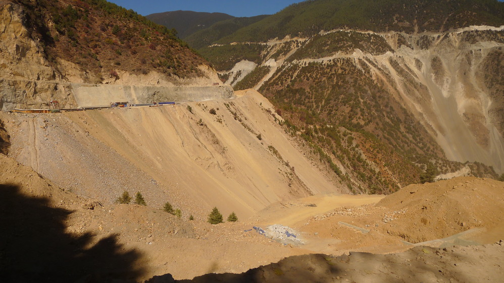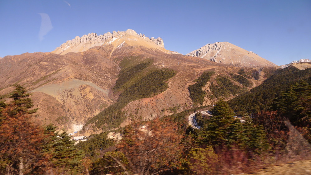 去往德钦 的路可以说是我迄今为止走过的最难走的路了,车子一直在大山之间盘旋,山路就修在悬崖边上,海牙 不断的和重型卡车错车,更增加了难度,因为正在修路,加上天气干燥,有的地方扬起漫天的灰尘,能见度很低。虽然路难走,但是路上的风景对于生活在平原地区的我来讲还是很震撼的,山峦起伏,峡谷纵横,气势恢宏,心中不由得升腾起一种豪迈之情!