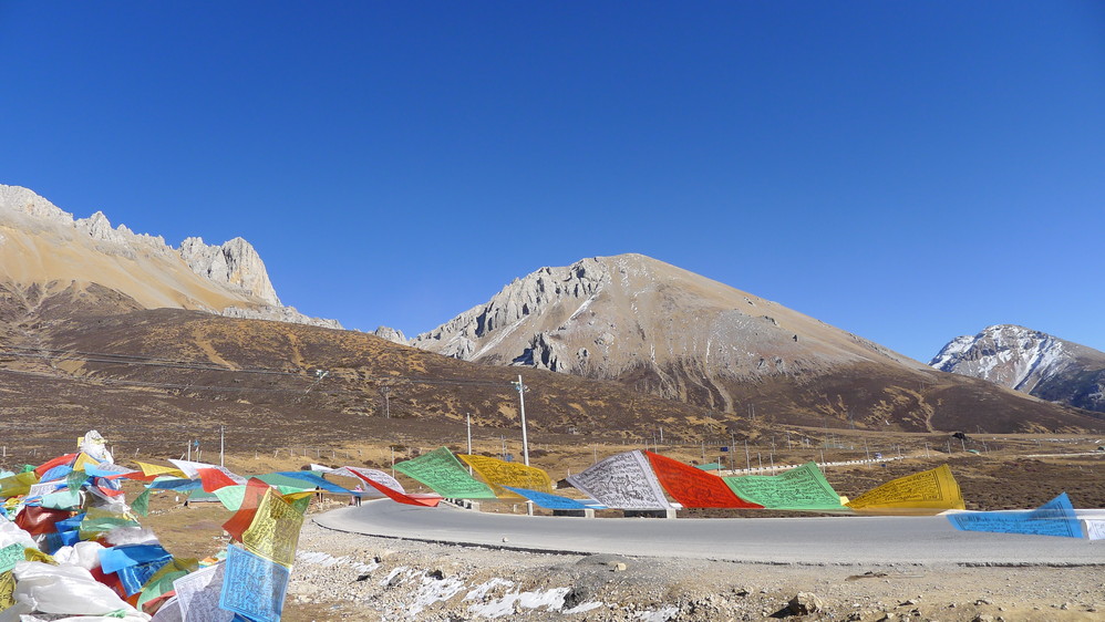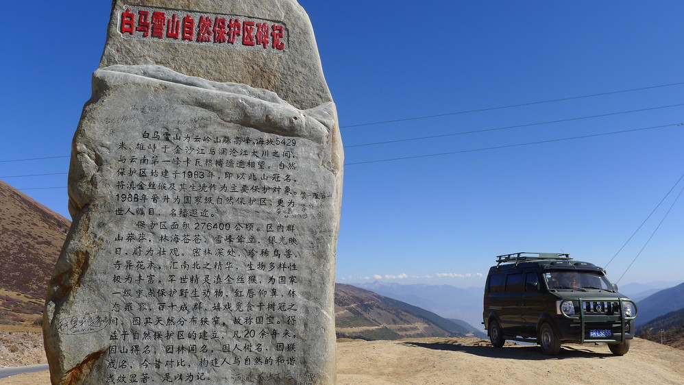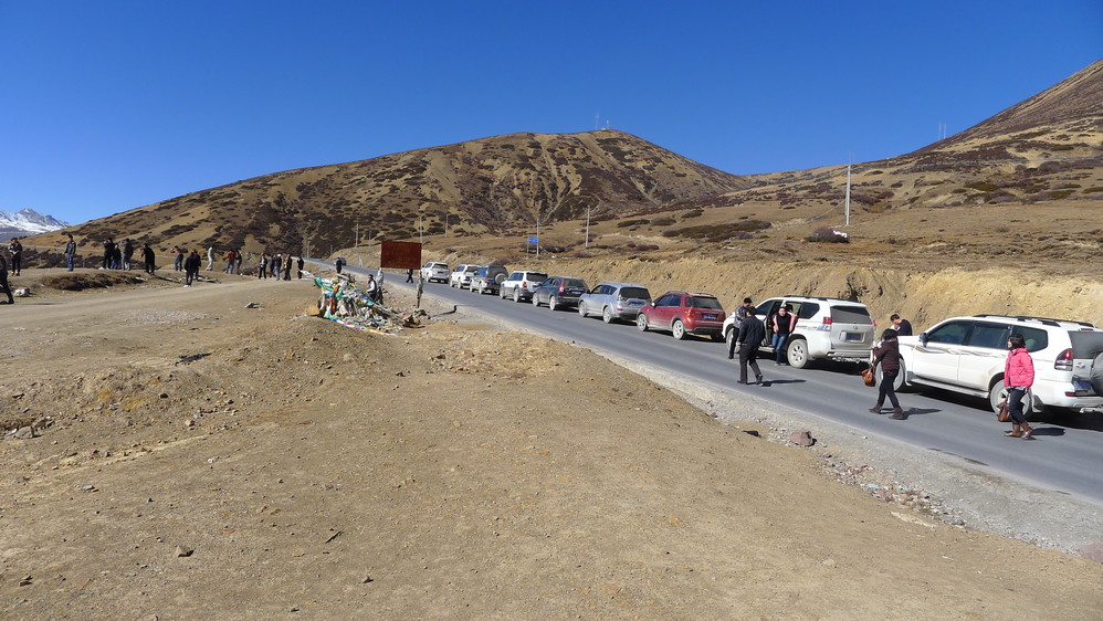 这里是白马雪山的第一个垭口,在这里拍照,恰好有个车队也过来拍照。