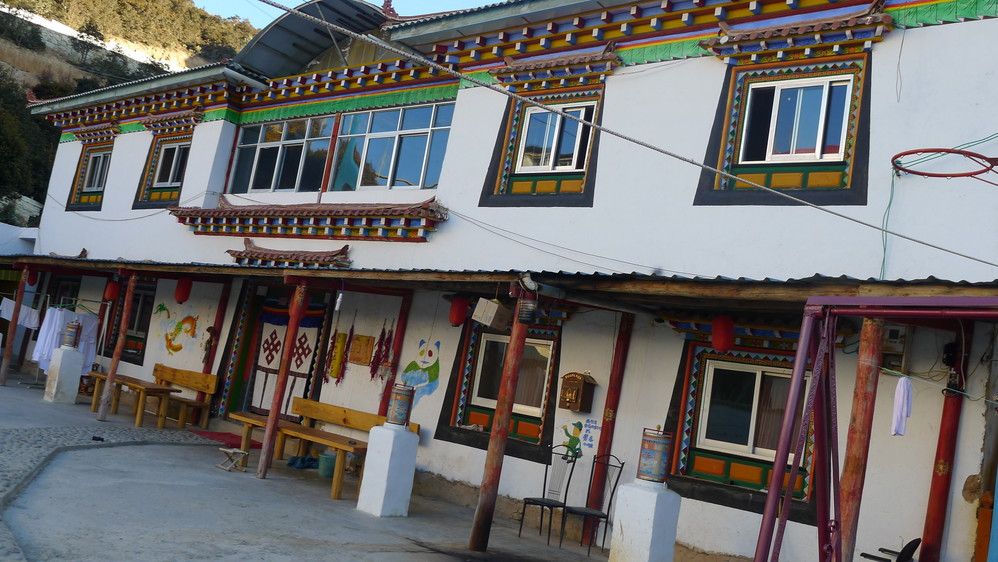 我住的是二楼的一个四人间,不过只有我一个人住,二楼的房间可能是后来才加高的这么一层,看着像个仓库一样,而且洗漱的地方在外面露天的,这种天气在外面洗漱很冷的,不过也没办法,不想麻烦再换了,赶紧洗漱完毕上床睡觉,明早就要看日照 金山 了。