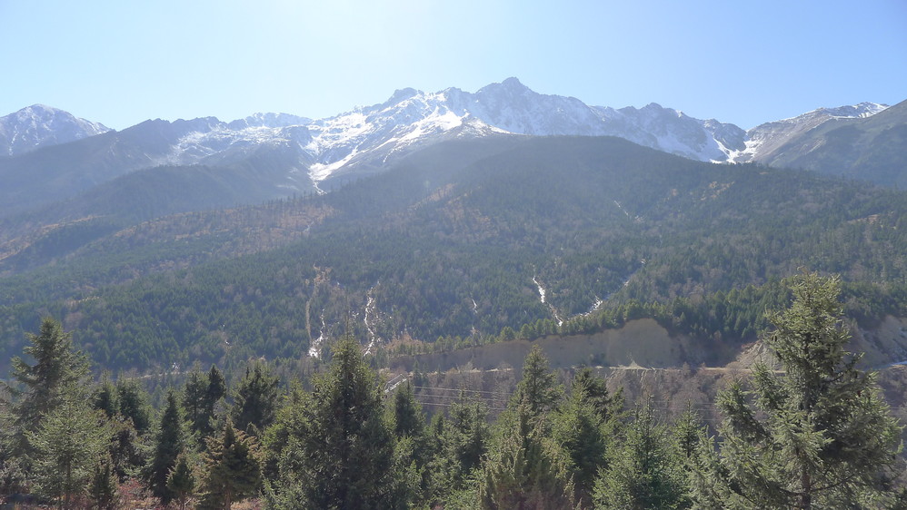 去飞来寺要翻越白马雪山垭口,远望白马雪山