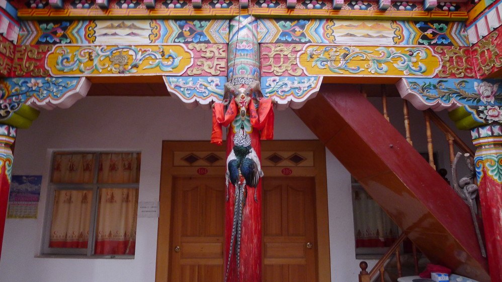 参观完飞来寺大家也都饿了,于是到了一个叫“飞来寺山庄”的餐厅吃晚饭。餐厅是藏民开的,完全是藏族风格。