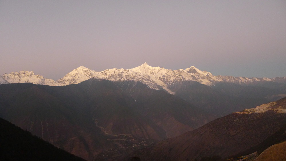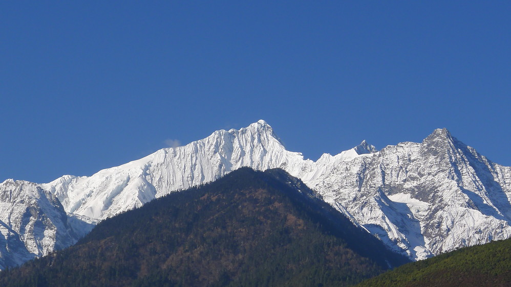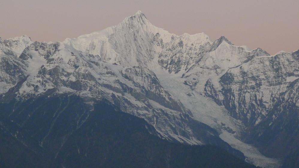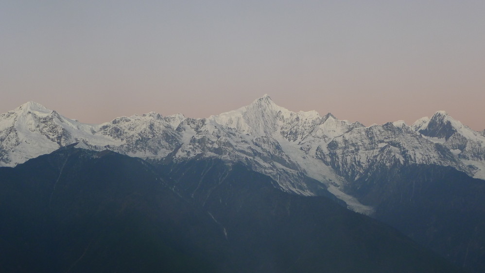 从飞来寺无西当,同样要翻越一座山,梅里雪山 就在对面,峡谷底澜沧江 奔腾着流向远方。