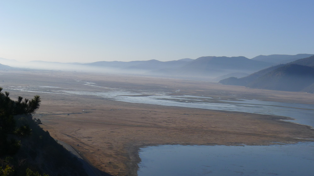 车子经过纳帕 海的时候,停下来拍了几张照片,纳帕 海夏季挺漂亮的,不过现在就一般般了,湖面上笼罩着一层雾气。排骨昨天还和我说,很奇怪,明明香格里拉 是晴天,可是在石卡雪山上面就看到香格里拉 上空雾气蒙蒙的,这回知道原因了。