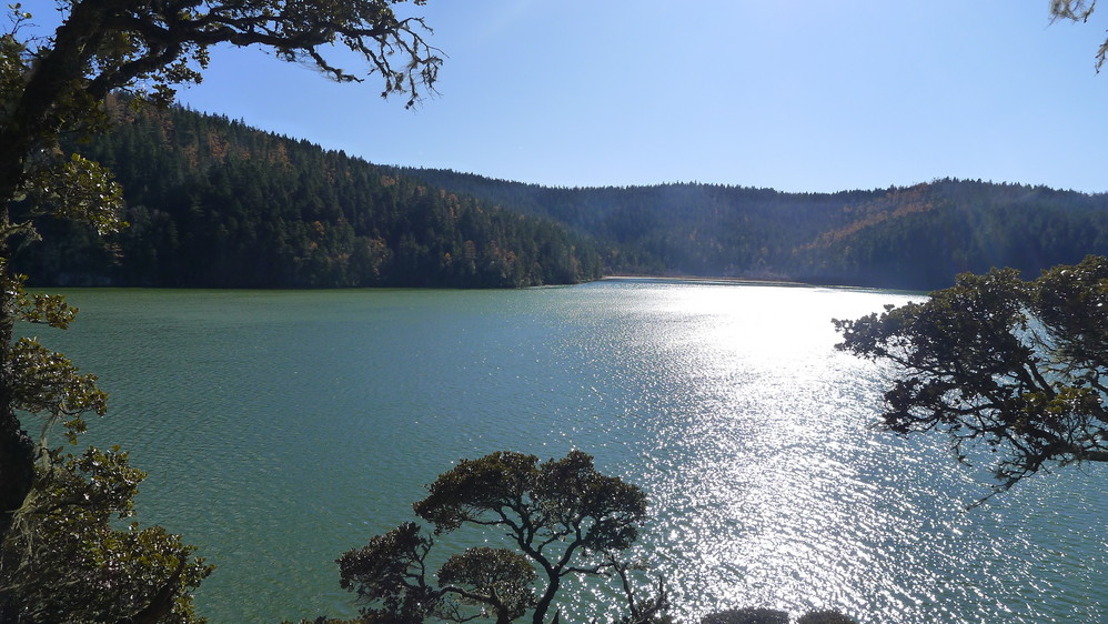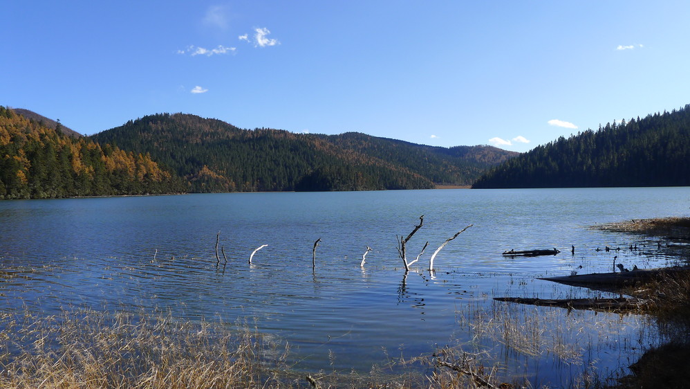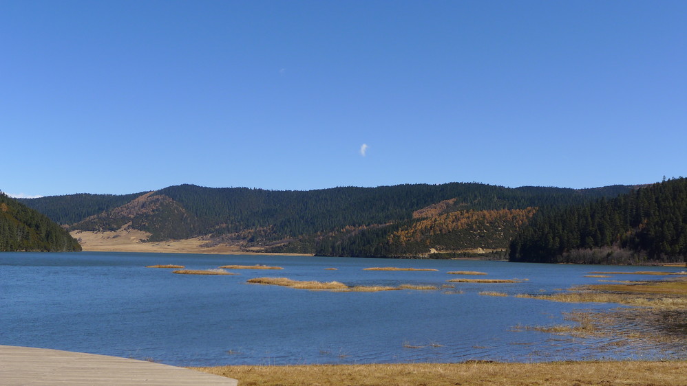 碧塔海是另外一个高原湖泊,同样栈道围在湖边。传说碧塔海的水有八种功德,藏语“碧塔”是栎树成片的地方。藏语中碧塔海又意为宁静的海。