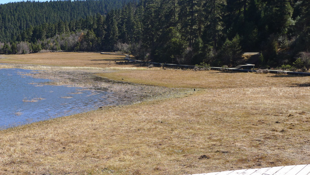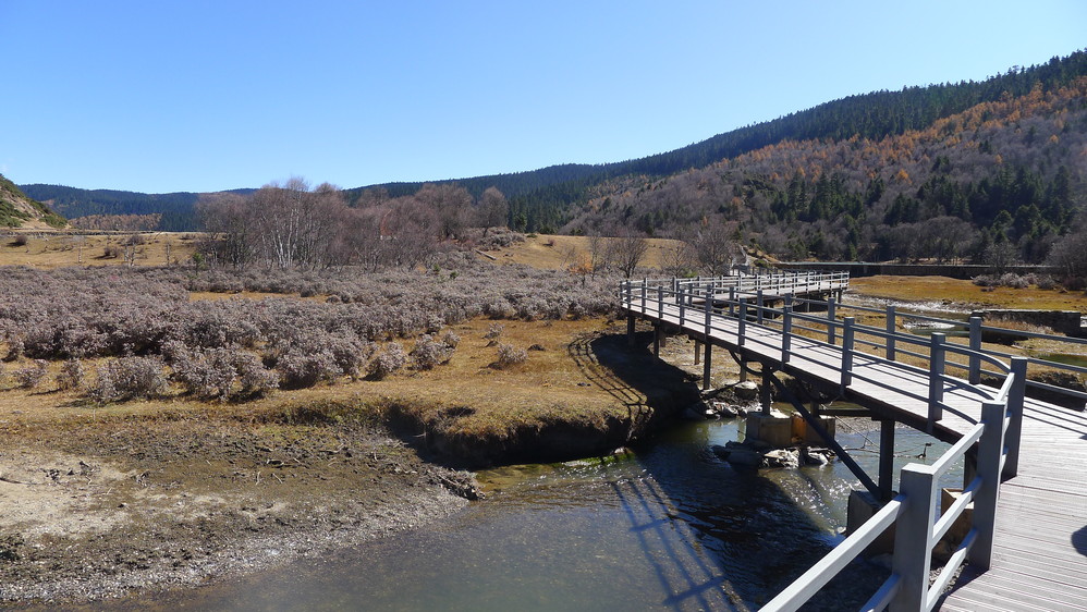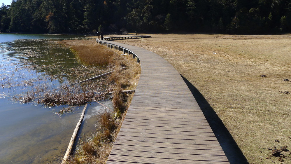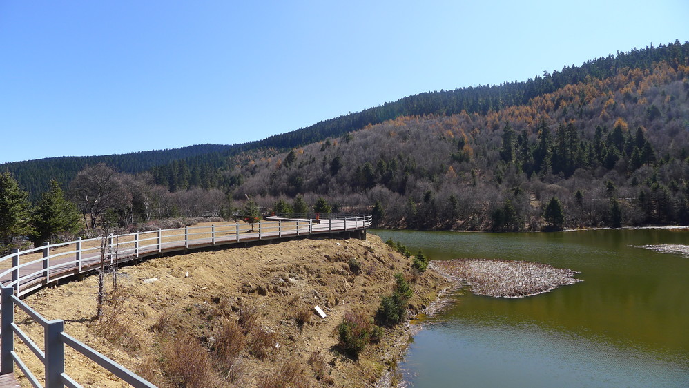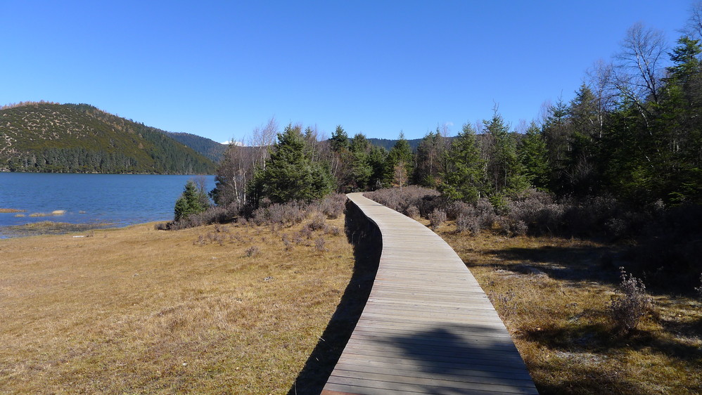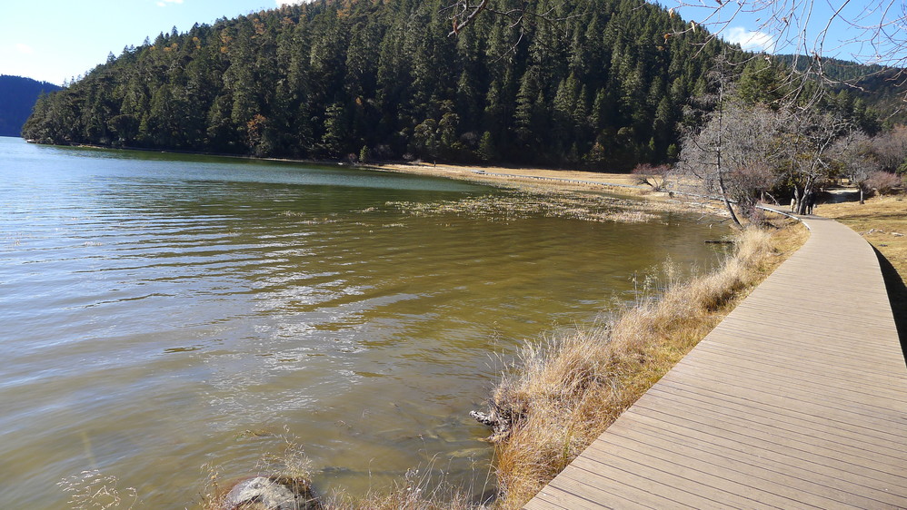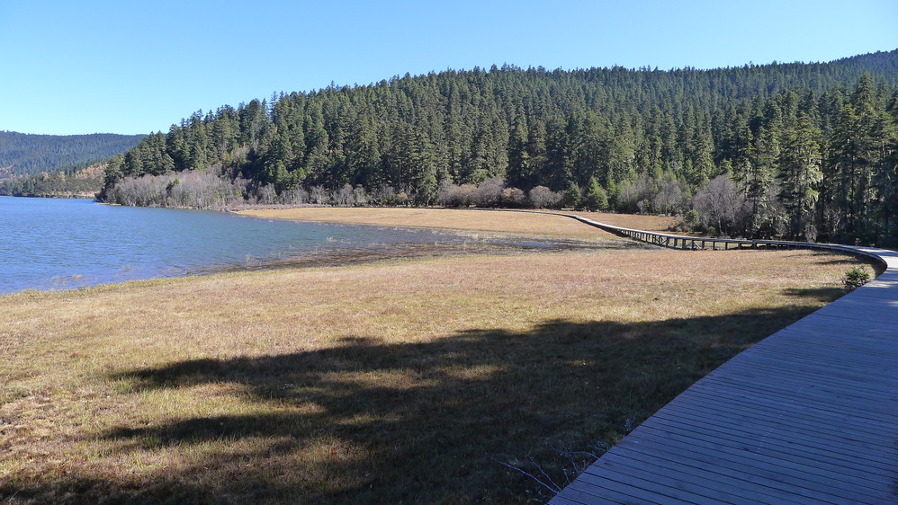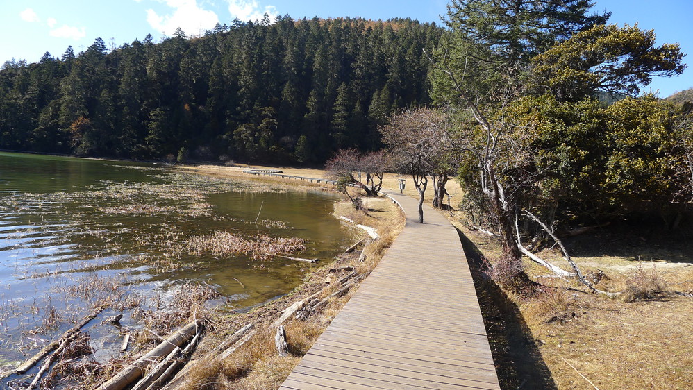 整个景区很宁静,走在栈道上,有一种独享整个普达措的感觉,这也是淡季才能享受到的,旺季来估计满眼都是人头,拍照也要去抢空隙了。