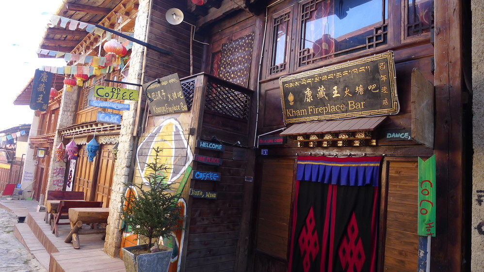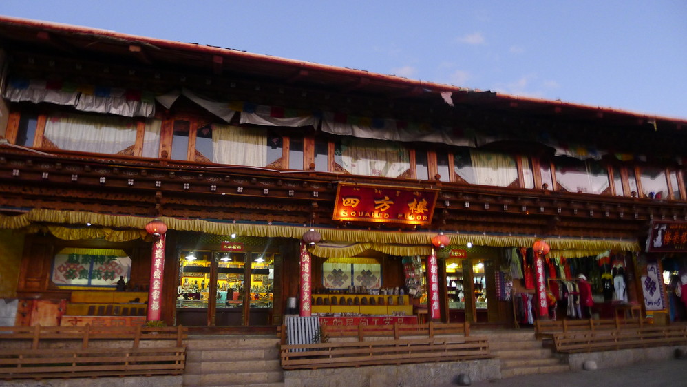 香格里拉和丽江的风格明显不同了,完全是藏族风格,色彩丰富但是色调偏冷。到了四方街都感觉很冷,就不想继续转了。排骨和布丁想去按按脚,说实话,两天虎跳峡的徒步确实很累,应该让脚和腿放松放松了,于是我们三个就转向新城 寻找沐足店。