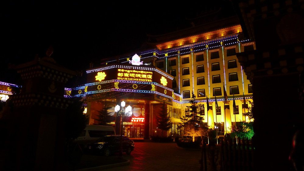 5点左右,顺利到达香格里拉独克宗古城。开始寻找住宿的地方,在古城入口处,即古城停车场往里走几十米远,有一家客栈,进去一问价格很便宜,标间和大床房都是60元每晚,独立卫浴,电视,电热毯一切齐全,于是决定住在这里。排骨就比较委屈了,住了一晚临街的一间很小的房间。
