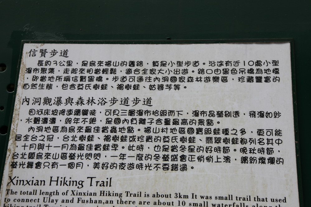 在逛完老街 、泡完溫泉、看過瀑布或賞過櫻花後, 大部份人都打道回府了, 但,如您還有時間及体力, 建議您再往福山 方向,到信賢瀑布去, 開車只要五分鐘即可到達停車場.