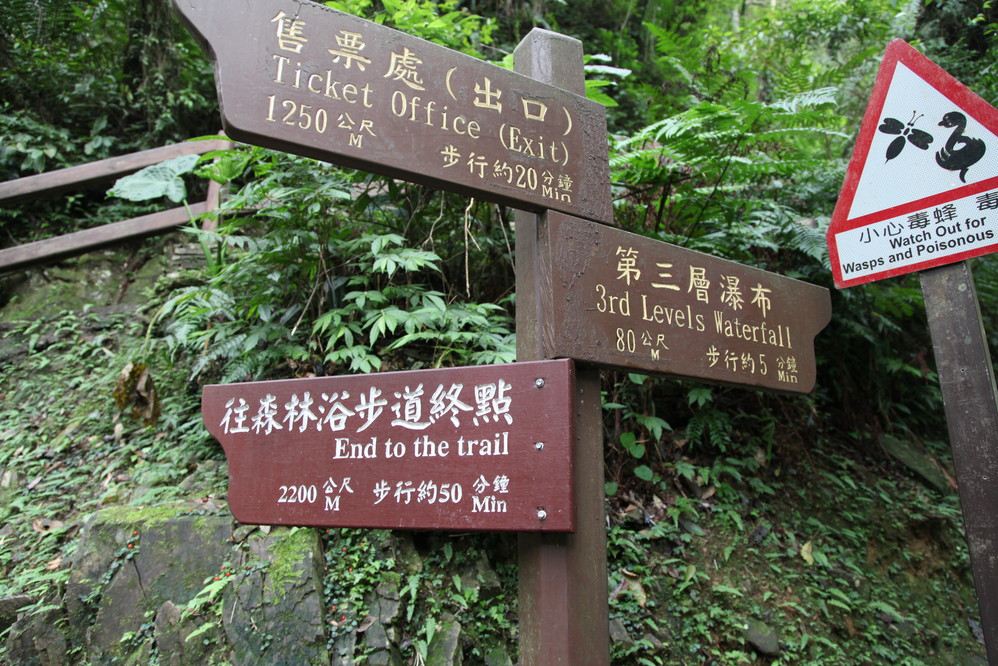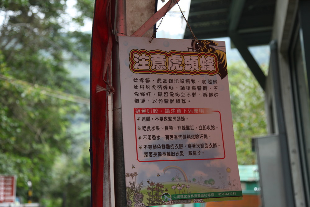 注意虎頭蜂. 在台灣, 虎頭蜂算是危險的昆蟲, 只要同時被多隻給蜇傷, 可是有生命危險的, 不過, 我是半隻也沒遇到, 正常的步道旁人來人往, 是不大遇得到的, 只有在山區的小徑上有可能.