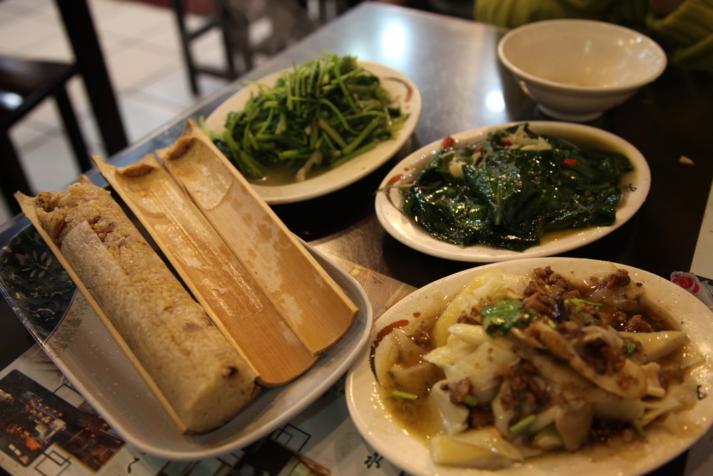 竹筒飯在大多數的山區可見販售, 魯竹筍也是不可少的, 再來兩樣野菜, 保証吃得飽