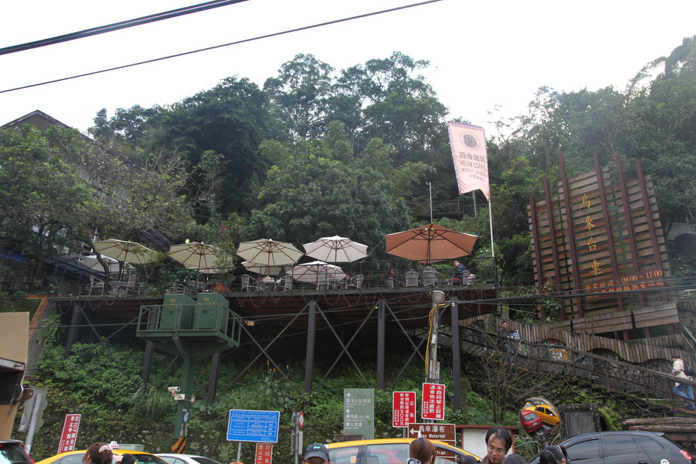 過橋的正前方, 就是這空中咖啡館, 經旁邊的階梯可到搭台車的地方, 走路才1.6公里, 大約半小時不到, 搭車就快多了.