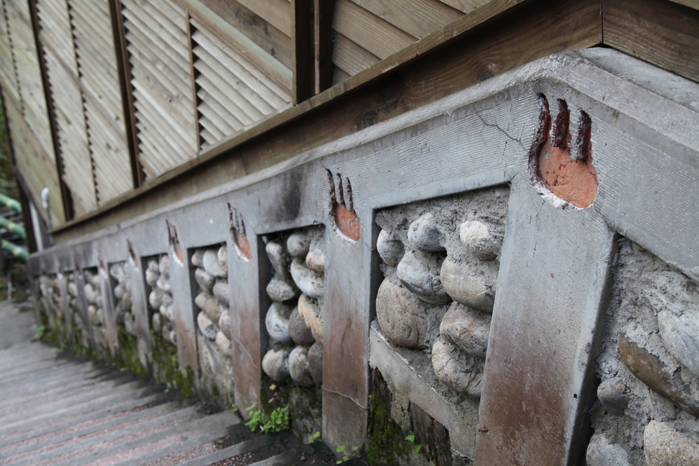 階梯邊的扶手, 都有溫泉的圖樣, 而且僅此一條, 一定不會認錯路.