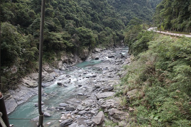 往橋的左邊看, 溫泉就從溪石灘中冒出來, 可是原汁原味的溫泉, 今天溪水較高點, 溫泉應是被淹沒了.我以前來時, 都自己帶圓鍬, 自己挖個洞自己冒, 如水溫太熱了, 就自溪裏引條小水道讓溪水加進來, 如太冷了,就拿個石頭堵進水道,所以想泡那個溫度,可自己控制喔.