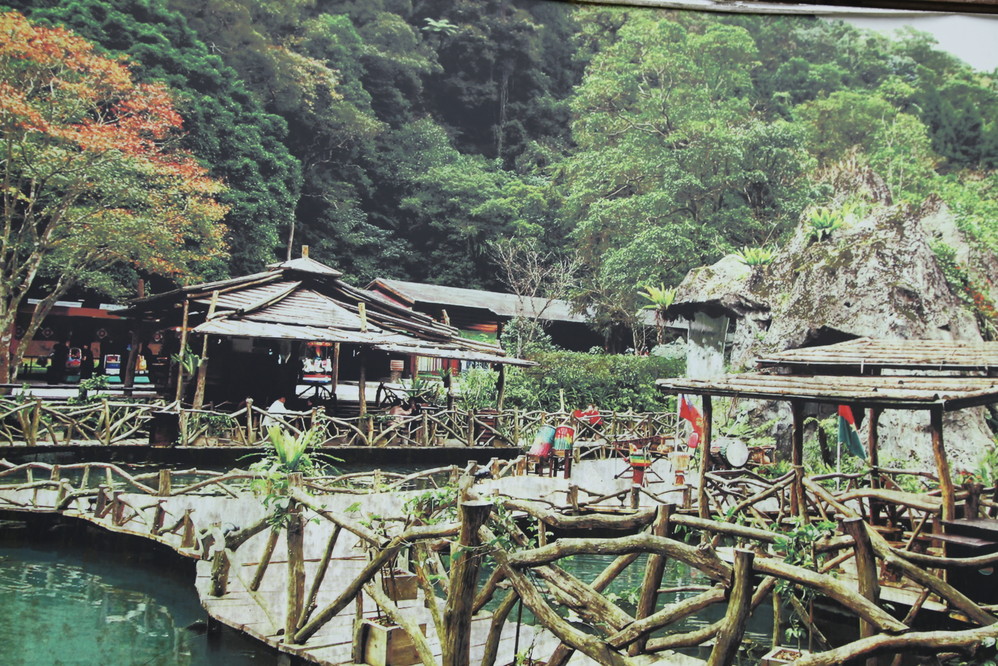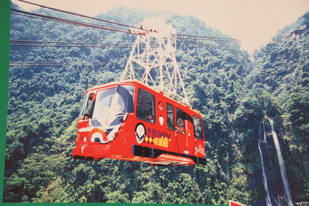 雲仙樂園以高空景觀纜車聞名台灣,景觀覽車全長約382公尺、高低差165尺,可欣賞烏來的山巒溪谷景色。(此張是翻拍自景區海報)