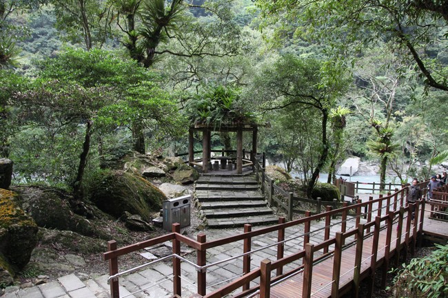 往右邊走約50公尺, 即可看到下到河邊的階梯.