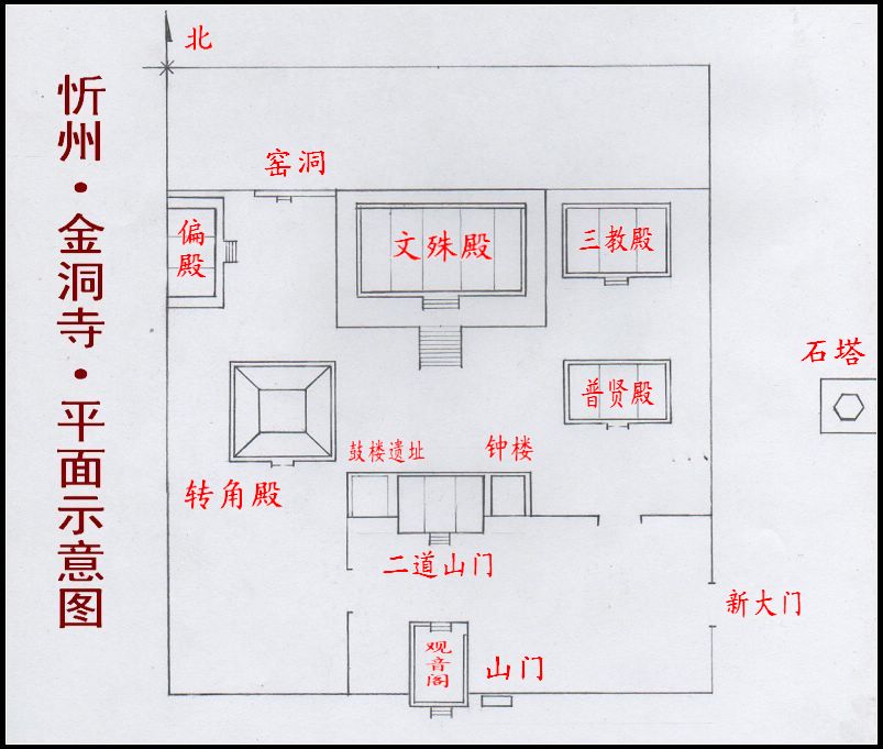 原金洞寺山门,双层、单檐、悬山顶,面阔窄小,倒座舞楼,不,倒座观音阁。