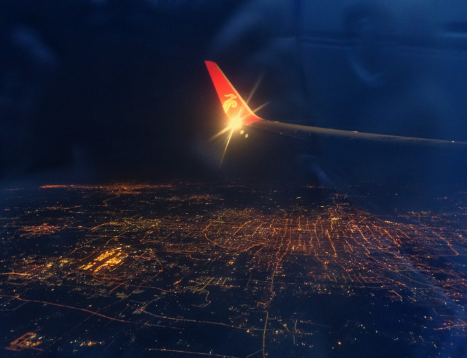 在回程的飞机上,俯瞰这个城市,冰雕上的五光十色,以及那星星点点的灯光,有点不舍得。