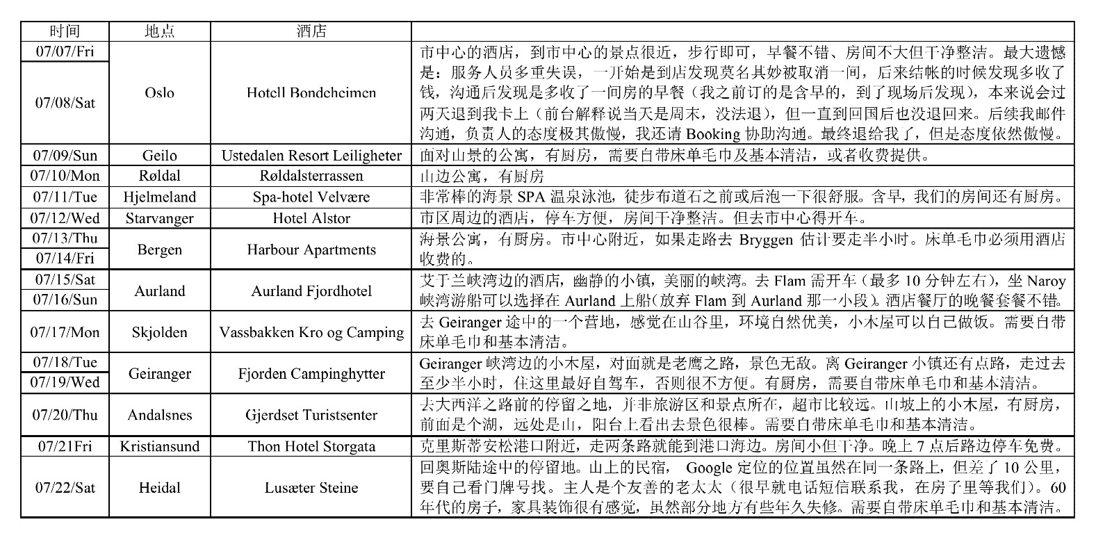 另外,在挪威这次行程中,有些酒店需要自己对房间进行基本的清洁(否则会收取费用,而挪威的人工费用都很贵),有些需要收取床单毛巾的费用(可以选择自带,但是这次有一家是必须用酒店收费的),另外,很多酒店不一定有24小时服务的前台,如果晚到,最好提前了解清楚如何check-in。