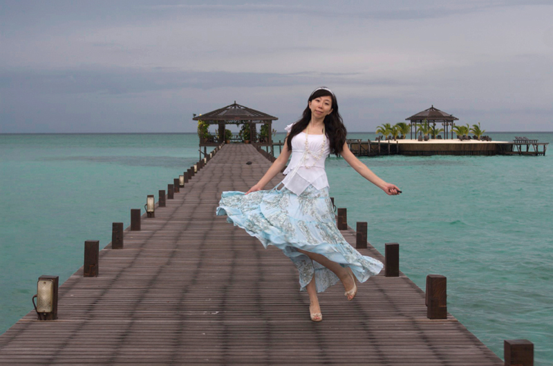 在kapalai最后一天自拍得动感照. 这条裙子好大的裙摆,可是早晨忙着收拾,因为十点坐快艇到Sempoma 没来及多拍,有点没发挥出来大裙子的特色,等下次吧. 顺便BS我自己一下,为了得瑟的自拍,再加上自拍确实有一定技术难度.早饭都没吃上.