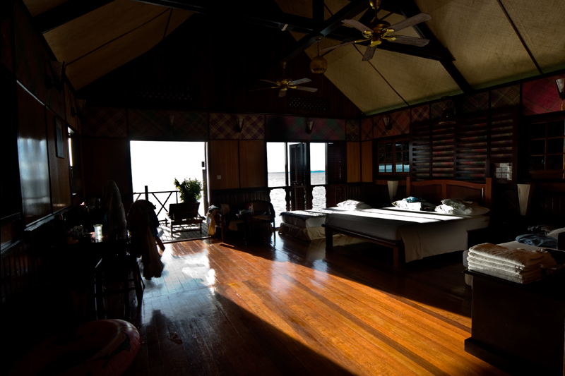 三面环海的木屋,非常舒适,面积大约70平米,非常宽敞,四处皆是景,有两人间、三人间,甚至可是四人间。不过KAPALAI的价格是按人头收费滴,两人间是按正常两人价格收取,三人间,是三人一起享受9.5折,四人一起住也是同样的折扣,就没有必要了。