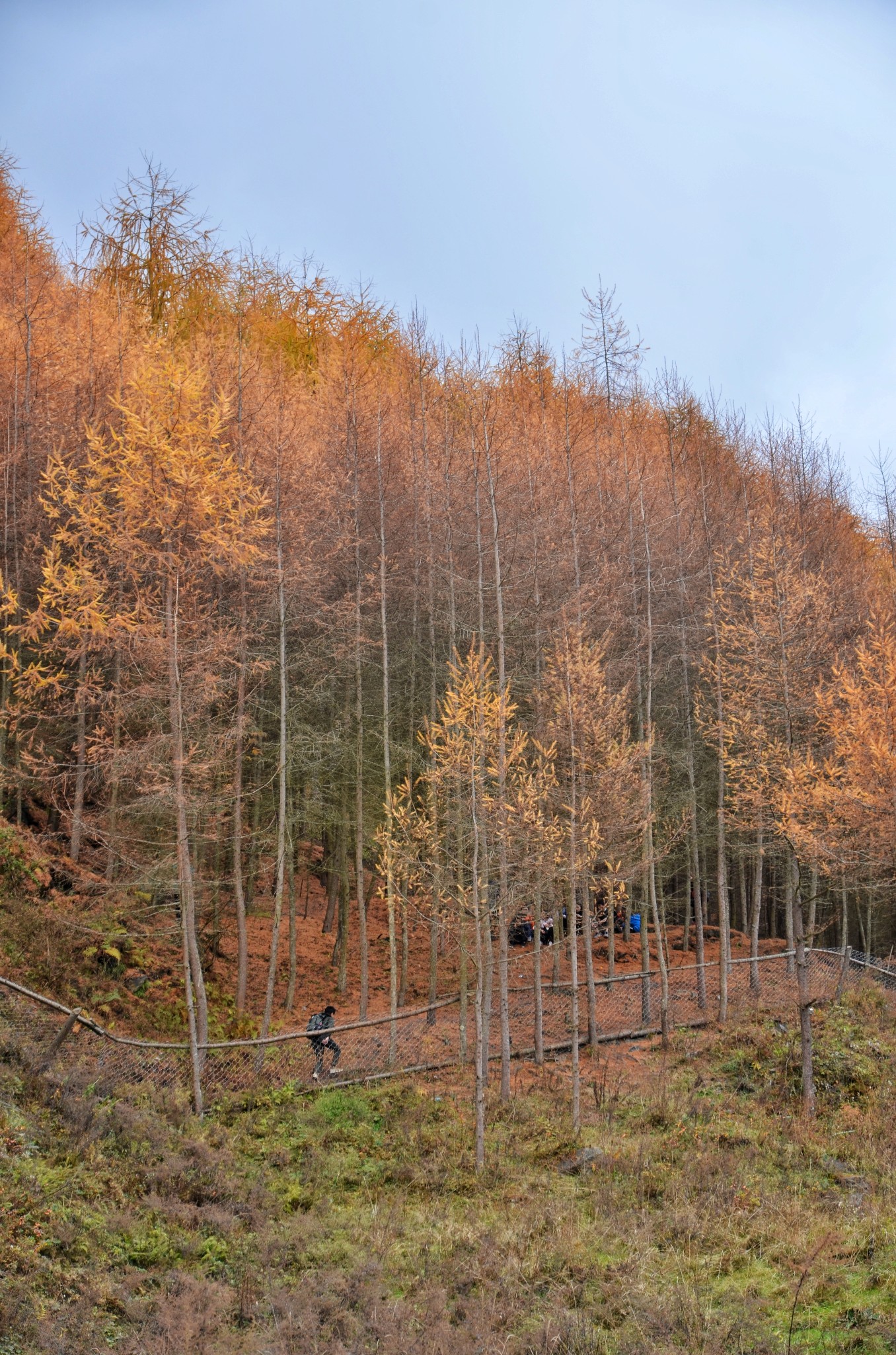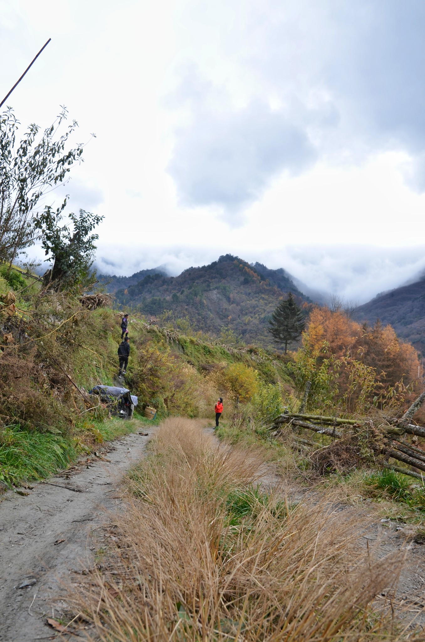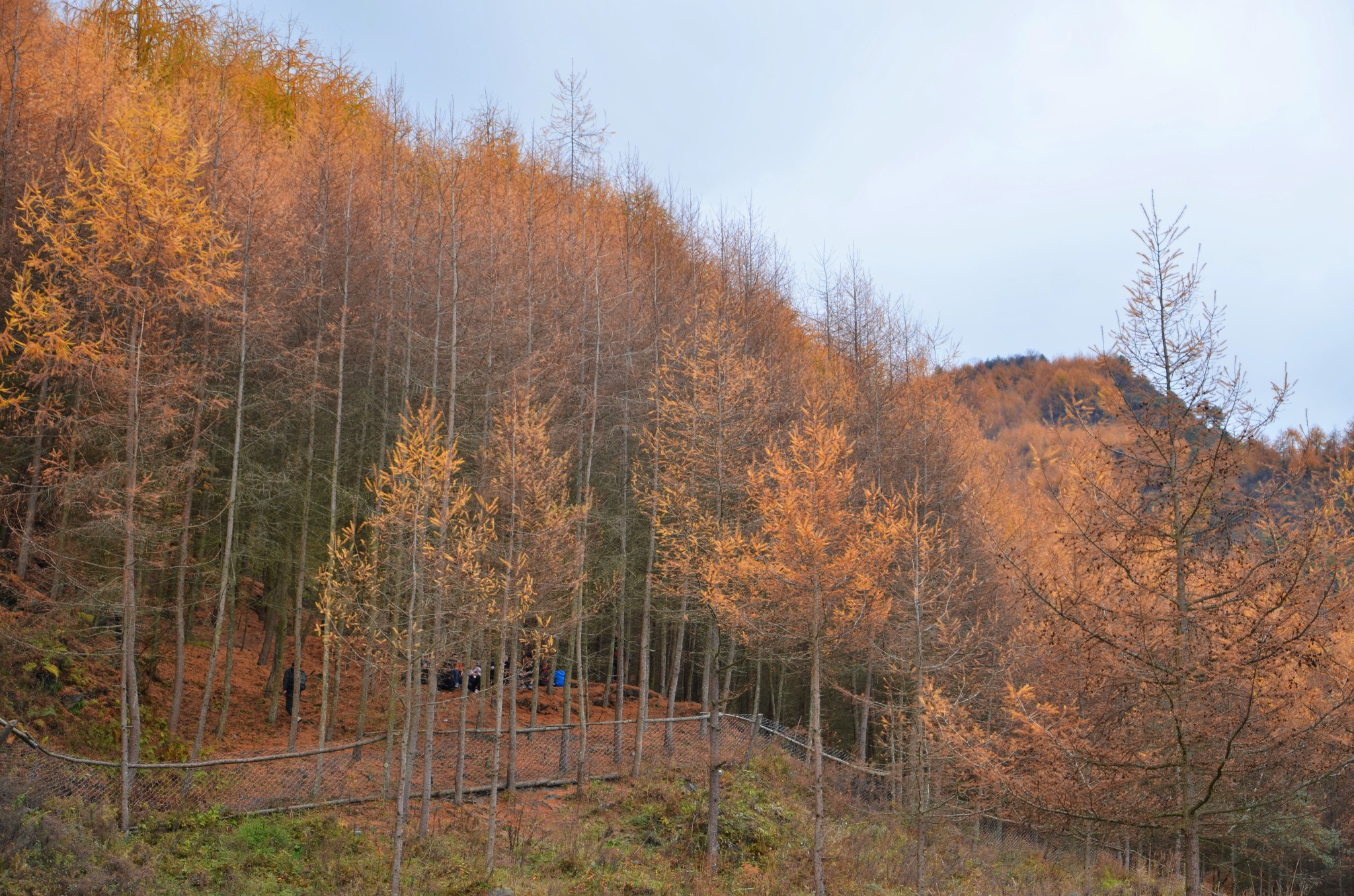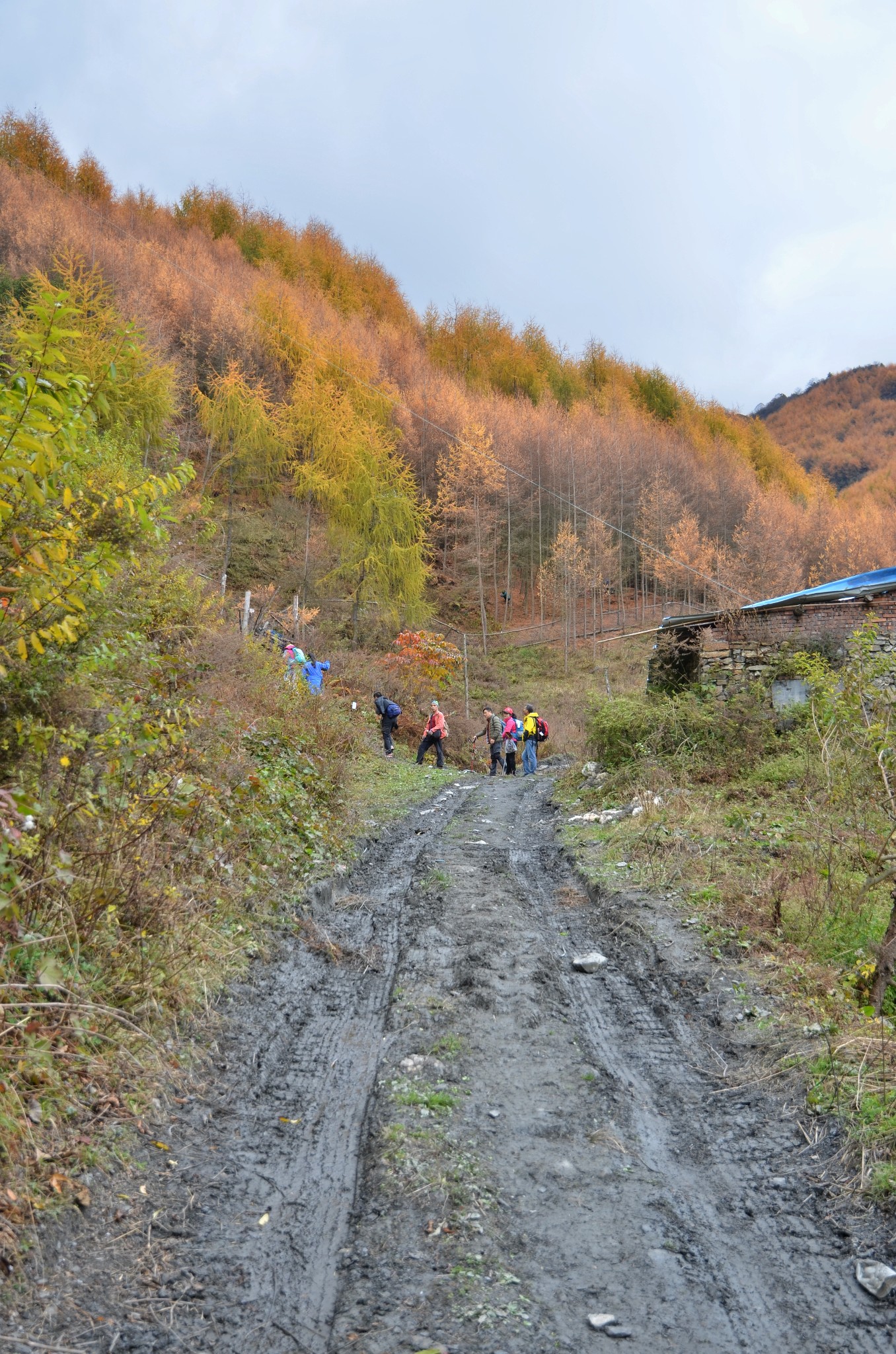 2017.11.18参加徒步,行走在卧龙转经楼村卓玛拉的山间小路,穿越金色的松林中,美丽的自然风光让人心旷神怡。