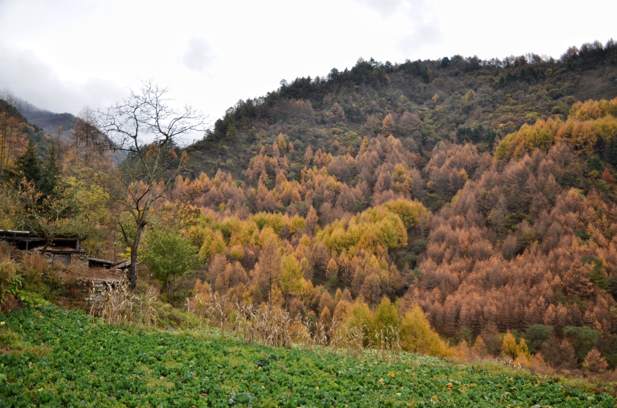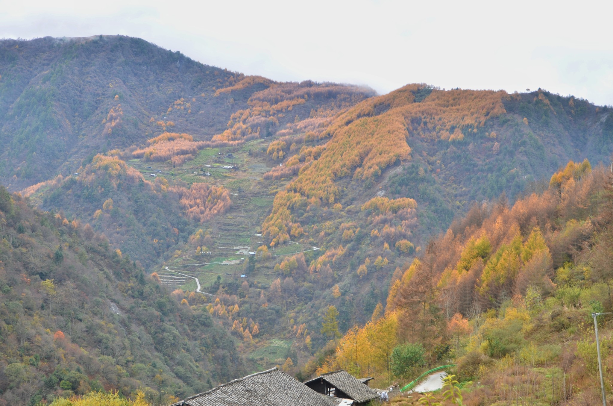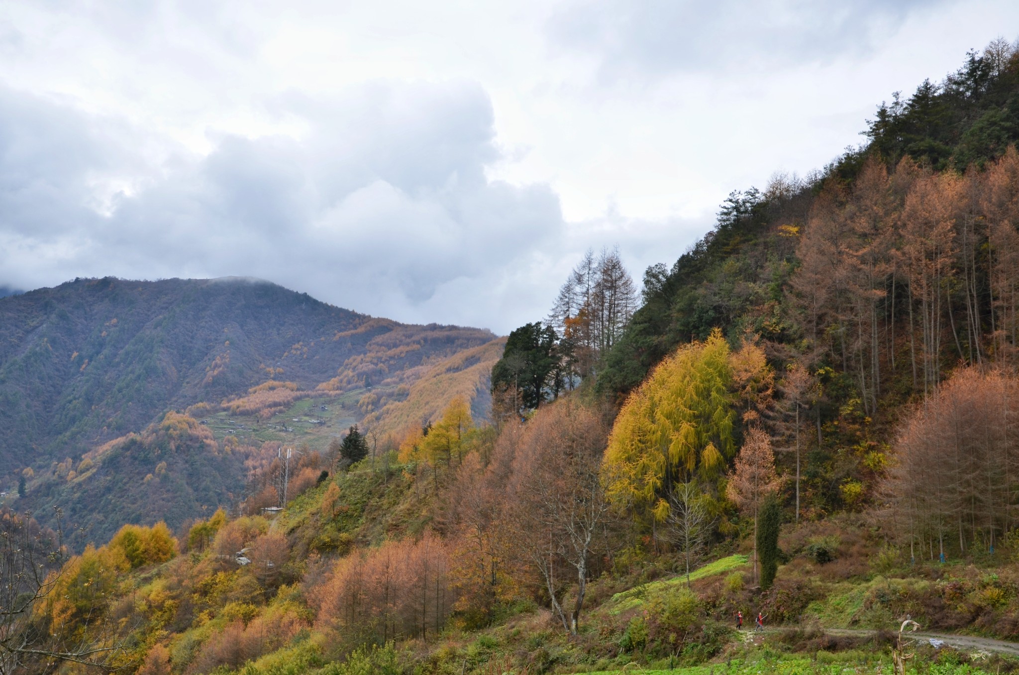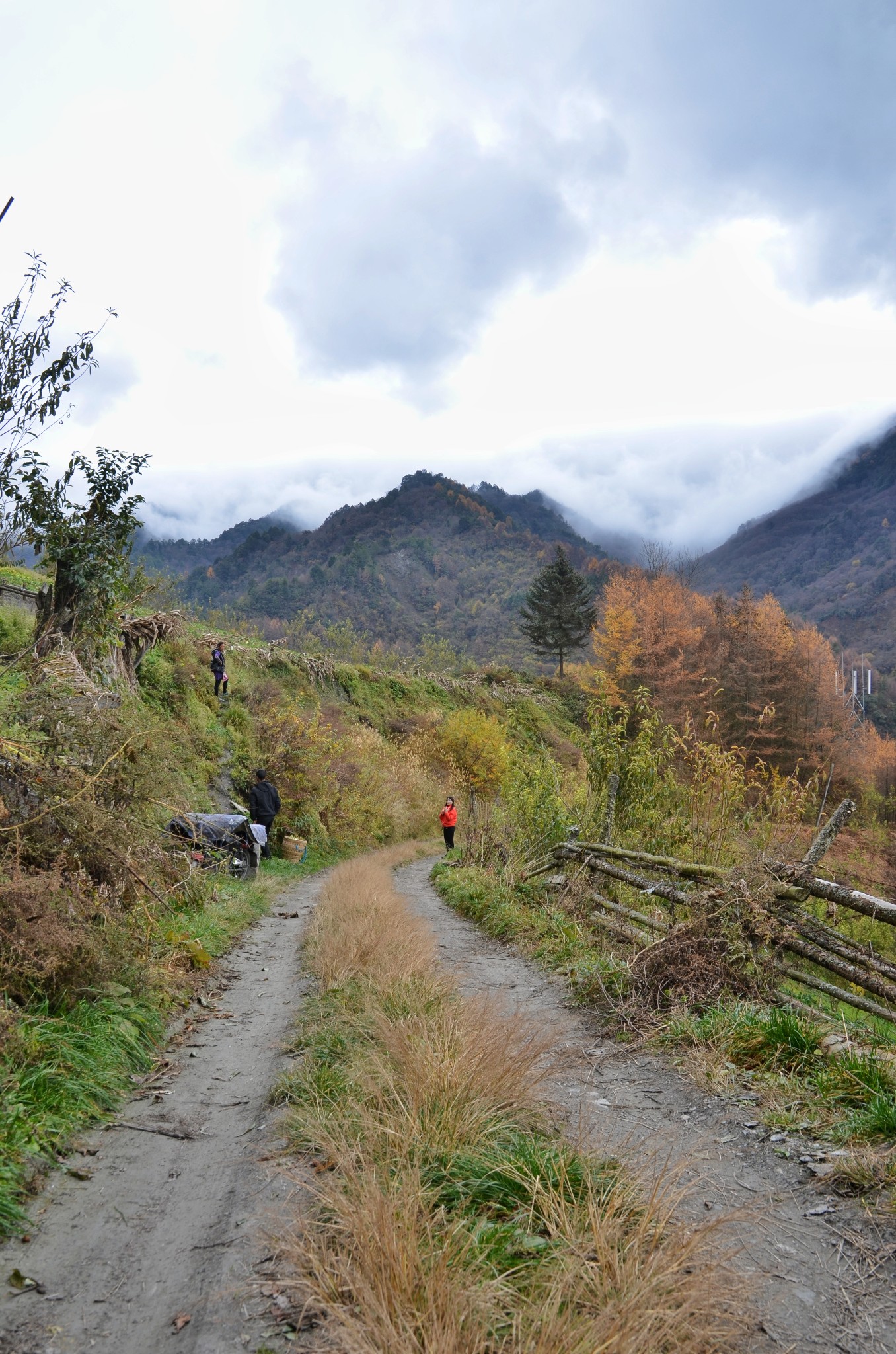 2017.11.18参加徒步,行走在卧龙转经楼村卓玛拉的山间小路,穿越金色的松林中,美丽的自然风光让人心旷神怡。