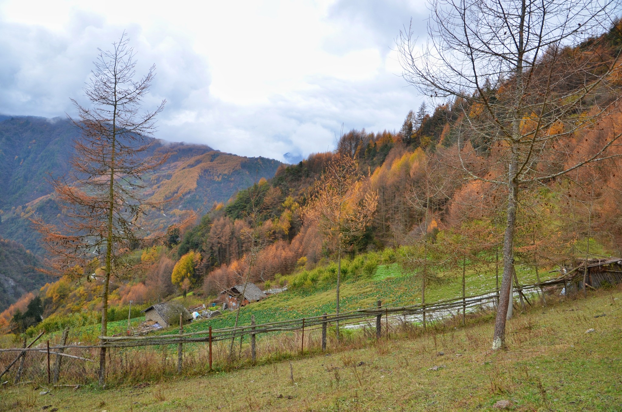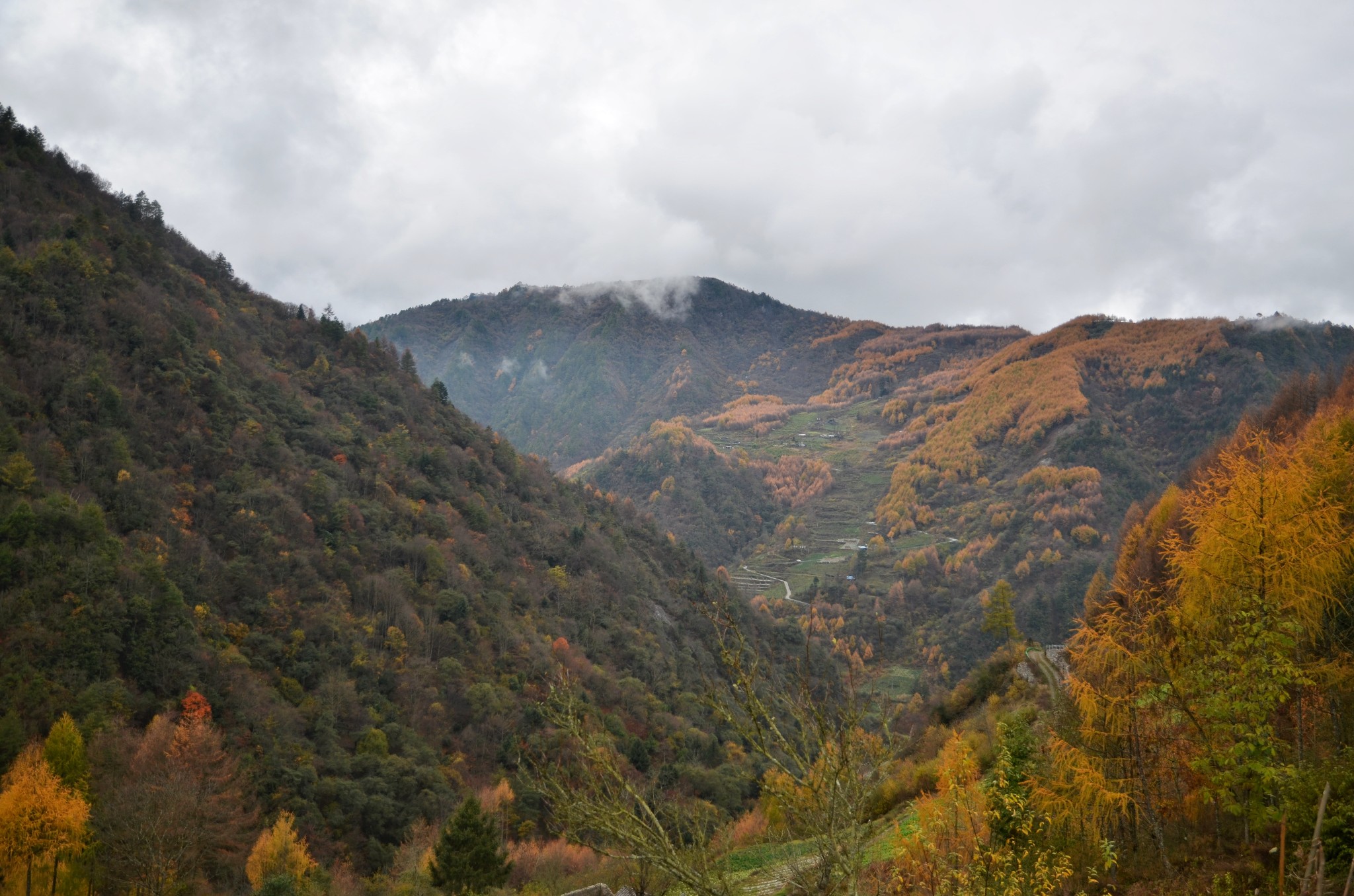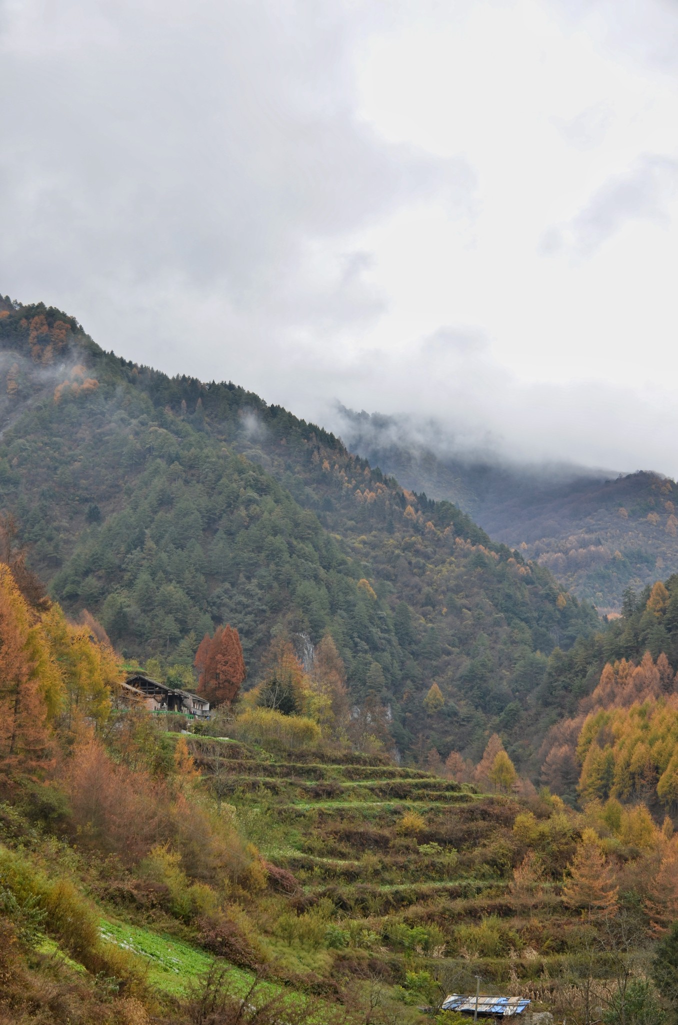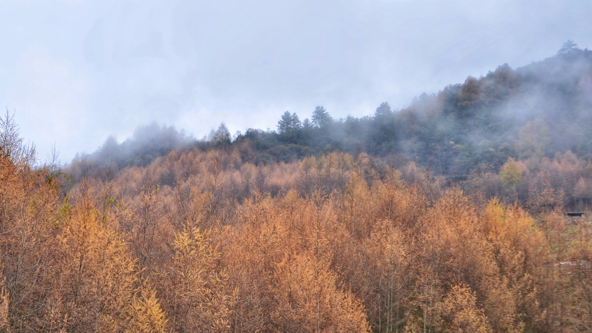 2017.11.18参加徒步,行走在卧龙转经楼村卓玛拉的山间小路,穿越金色的松林中,美丽的自然风光让人心旷神怡。