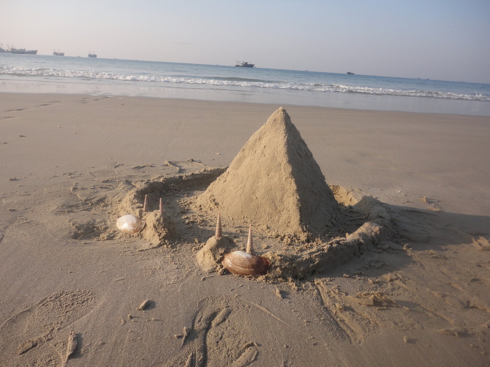 第二天早上醒来,去了海边,亲手堆的金字塔。