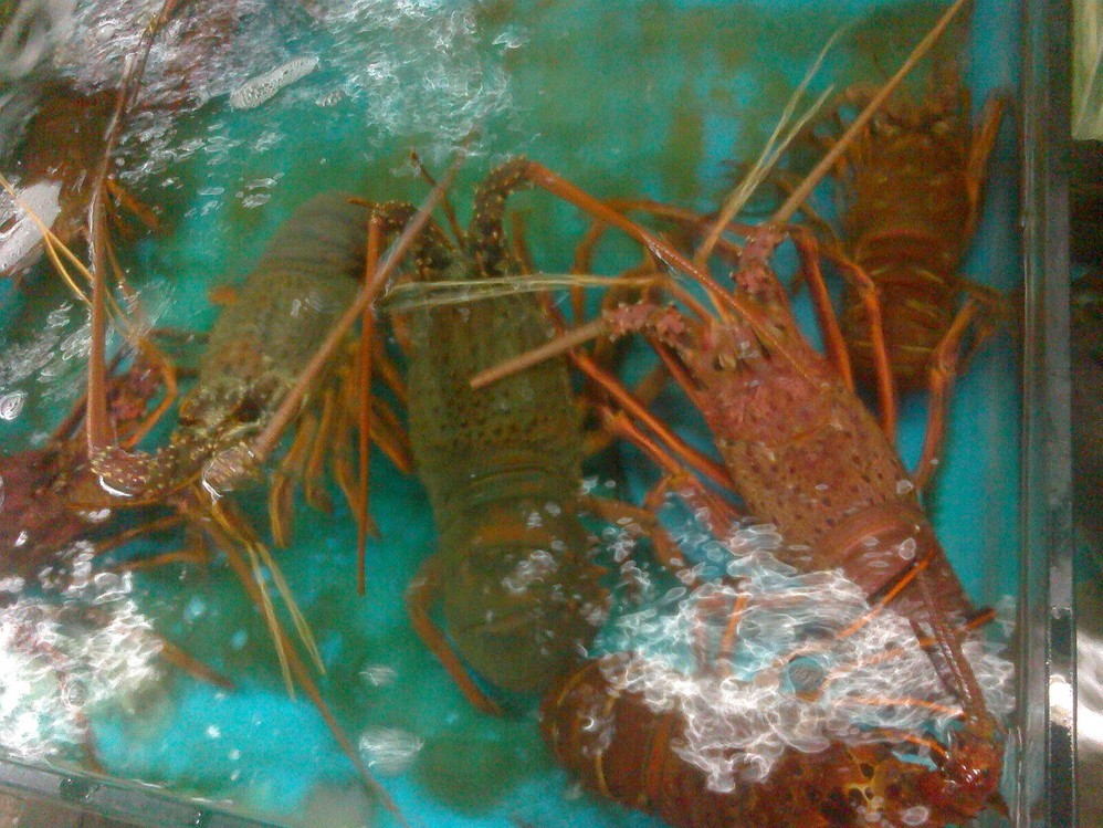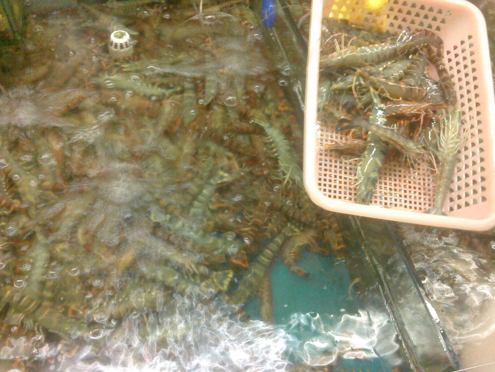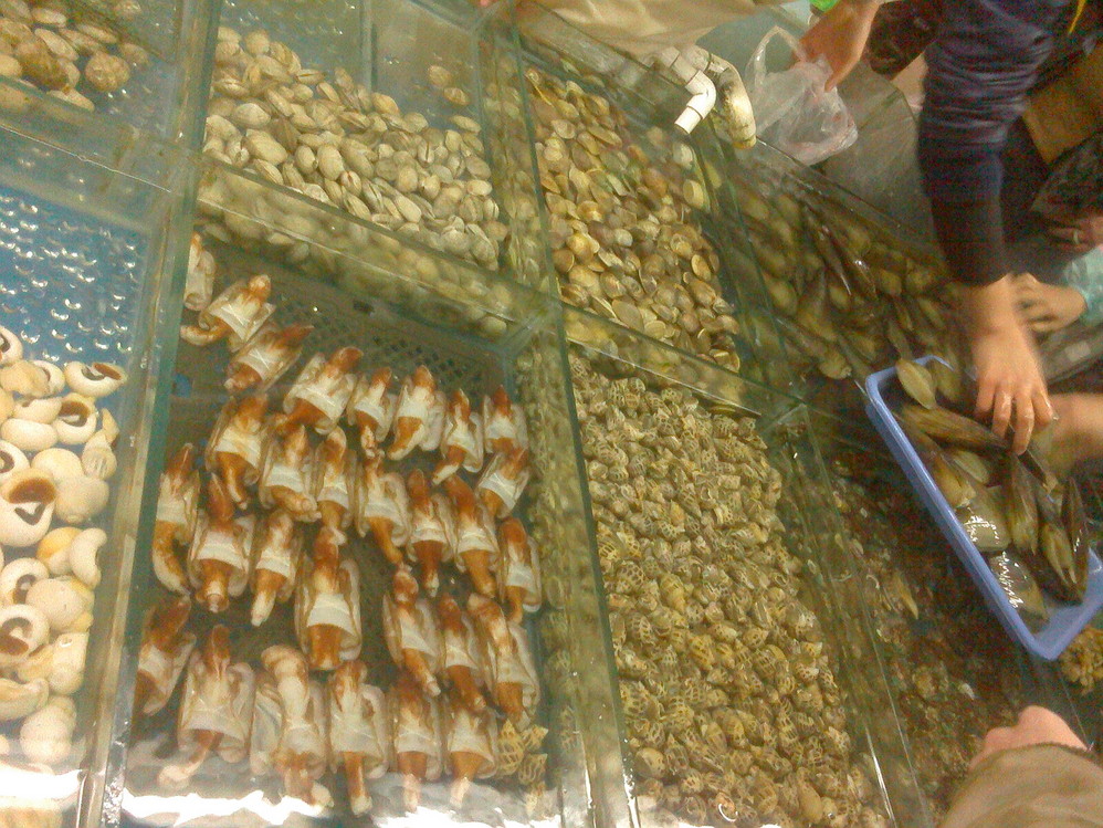 在海鲜市场买好海鲜,然后拿去给旁边的店子加工,想吃什么口味的随你,只收对应的加工费。