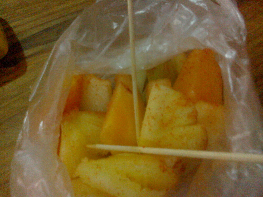 酸辣的泡水果,,第一次吃水果还撒干辣椒面,居然口感相当给力。