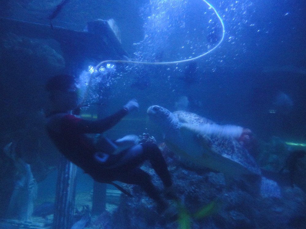 听里面工作人员介绍说是国内最老的海龟,有三百多岁了,
