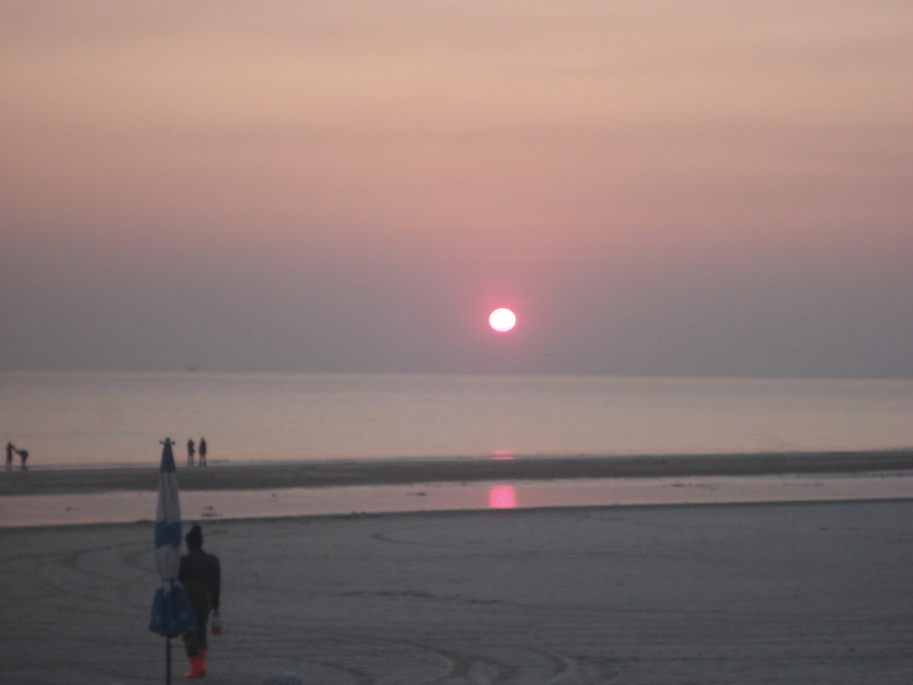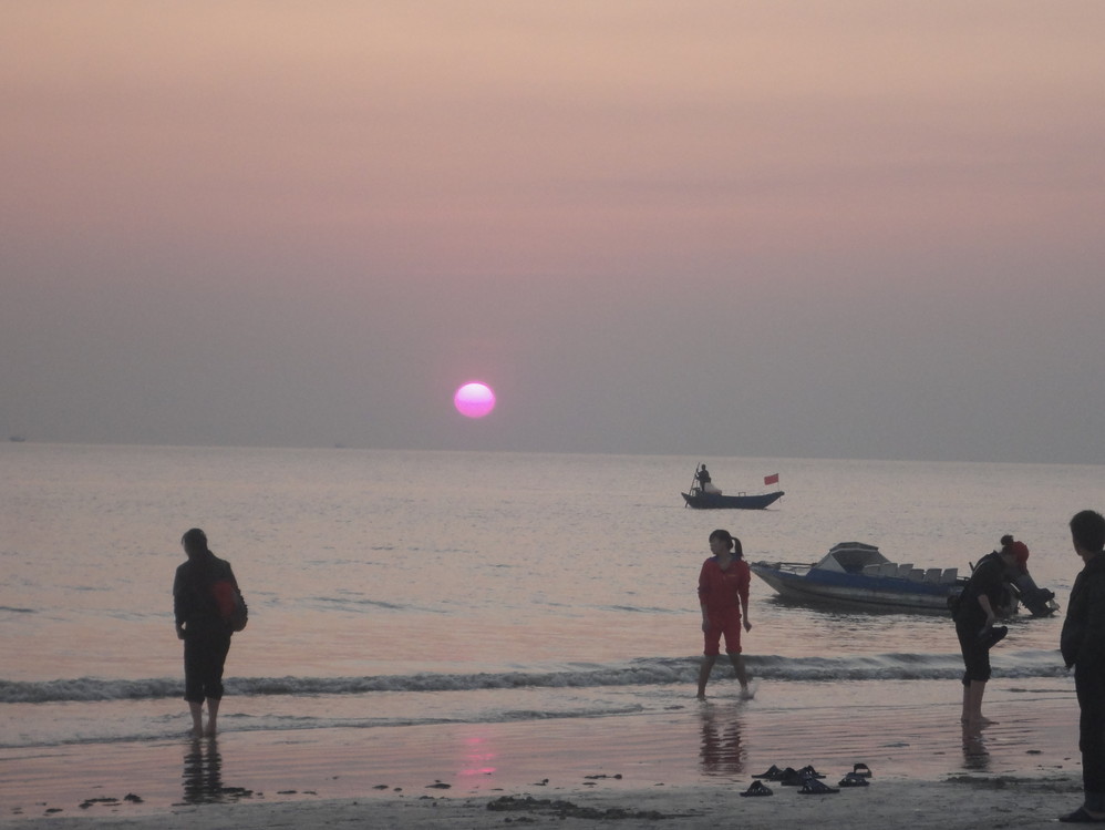 从海底世界出来,门口就有直达银滩的公车,起点站坐到终点站,我正好赶上北海 银滩的日落。